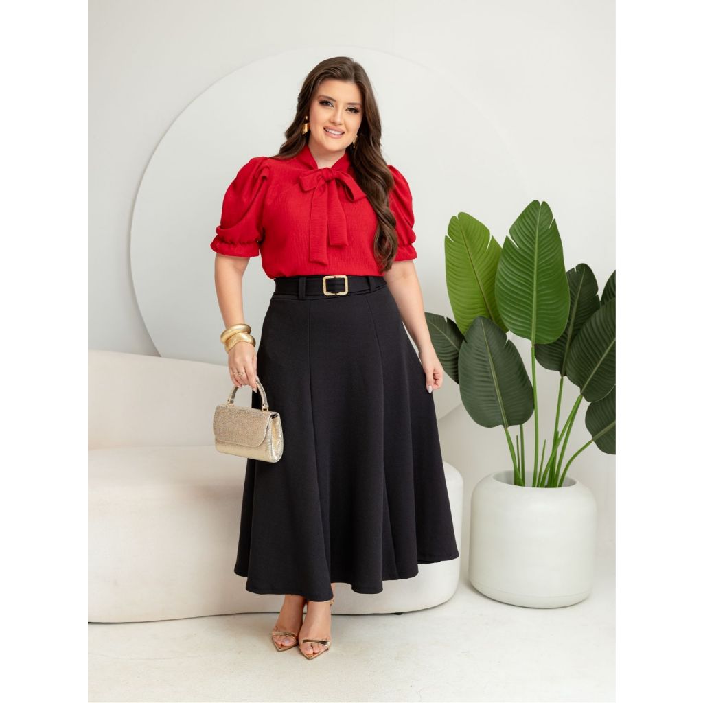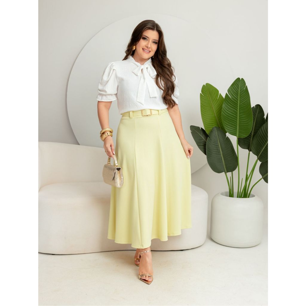 Saia midi max liso com cinto moda evangélica e femenino