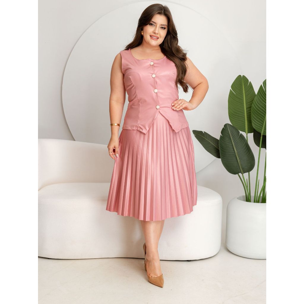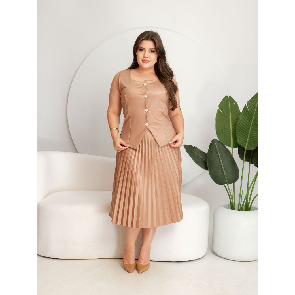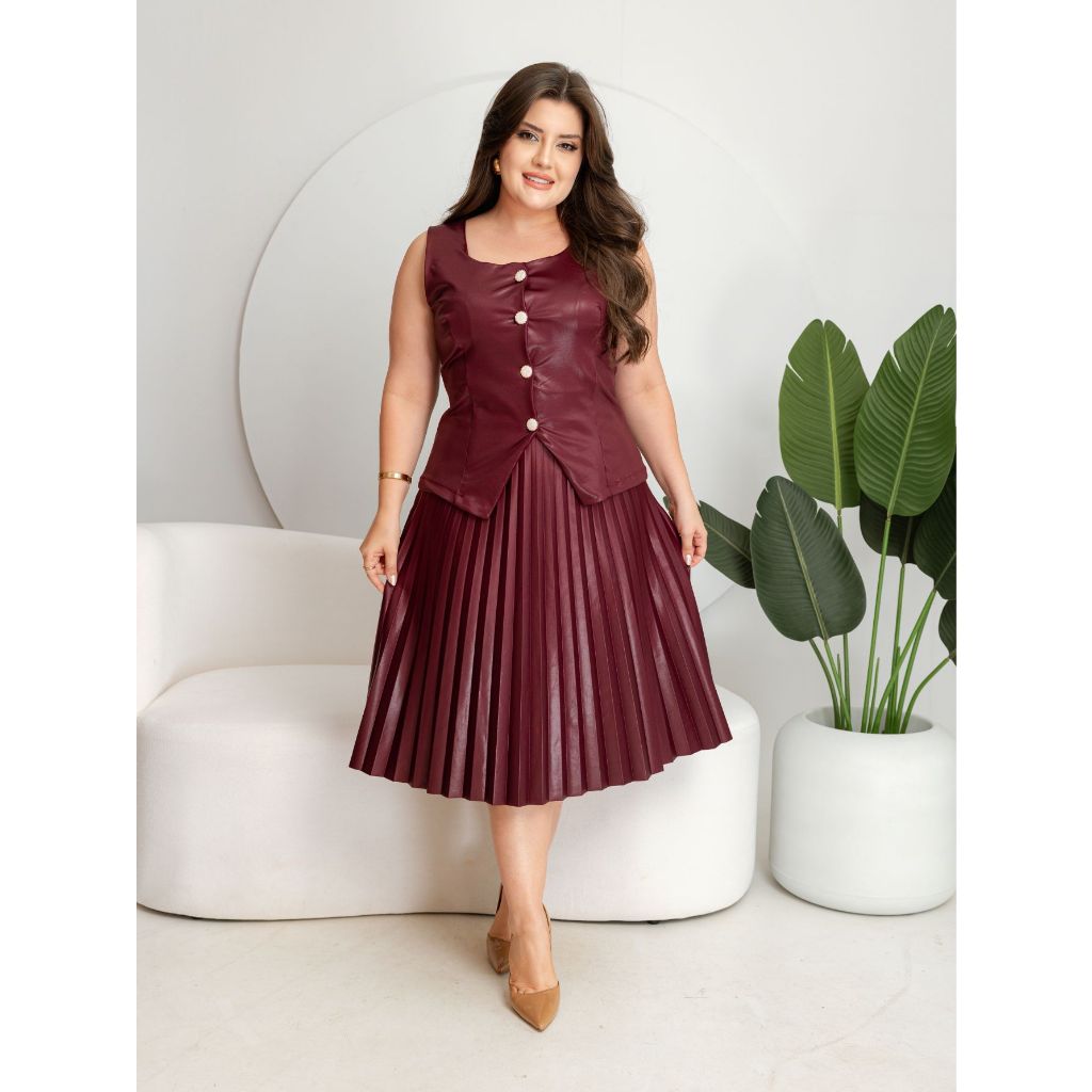CONJUNTO COLETE SAIA PLISSADA COM CINTO MODA EVANGELICO E FEMENINO