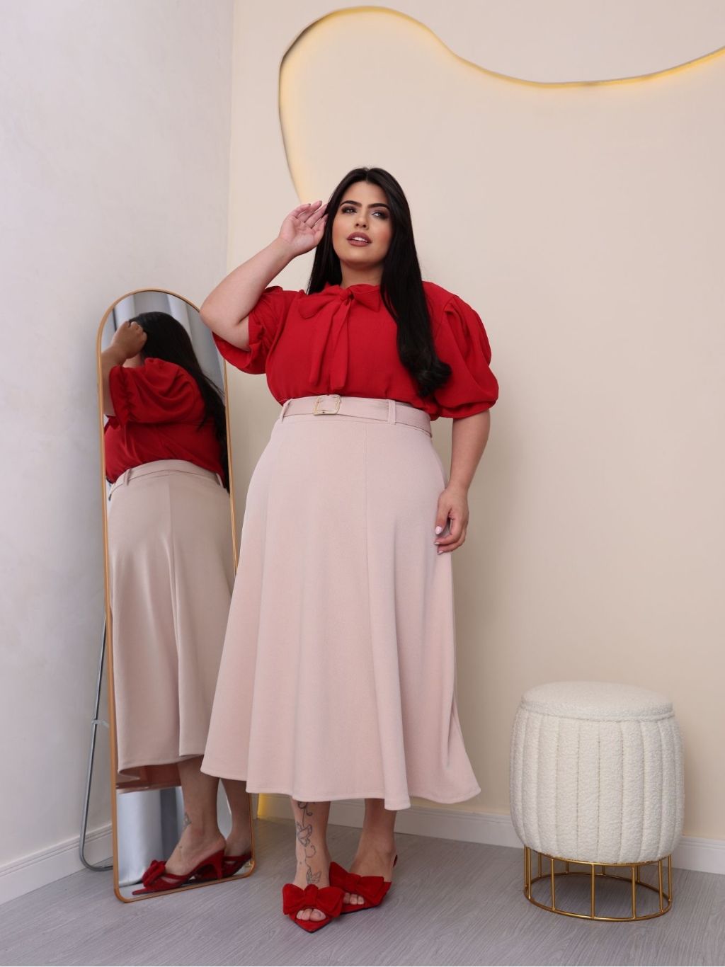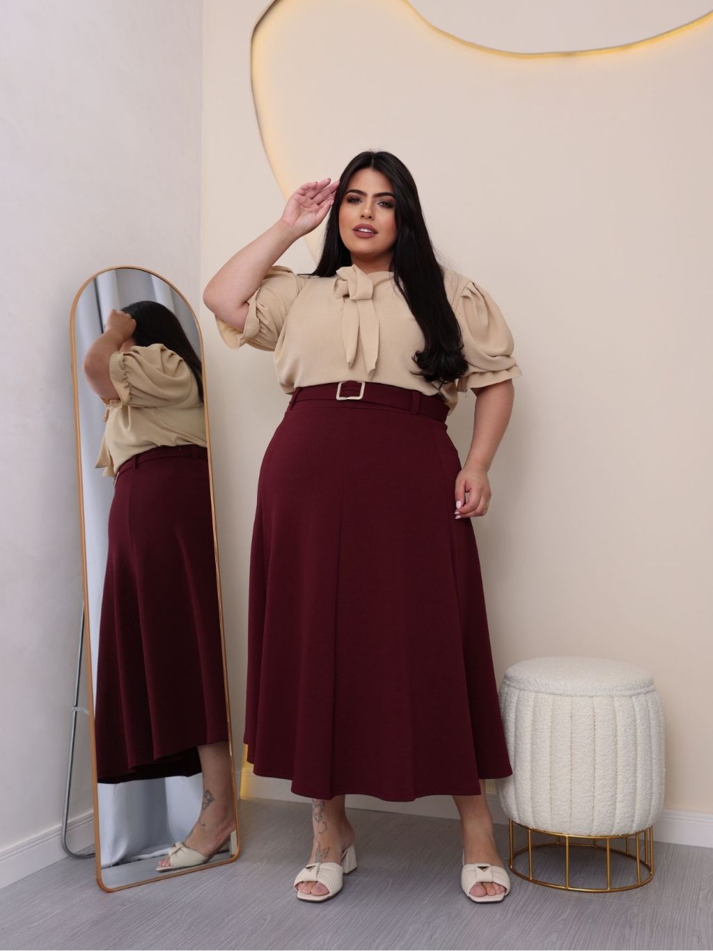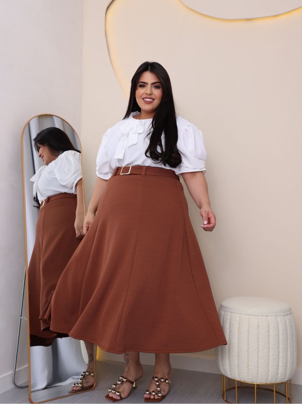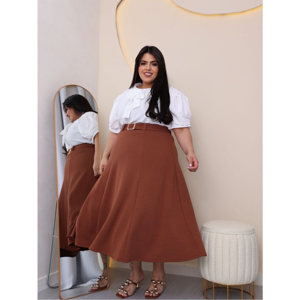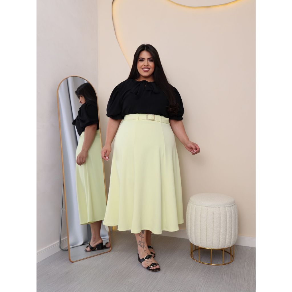 SAIA PLUS SIZE MIDI MACOM CINTO EM MALHA CREPE