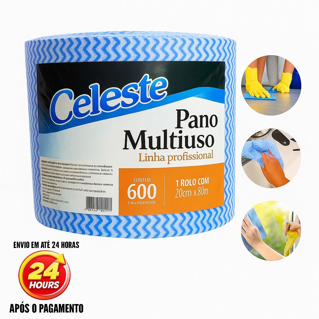600 Panos Multiuso Celeste 20x40cm Rolo 240m 100 - 50 panos -Limpeza Profissional Vidros, Eletrodomésticos e Móveis