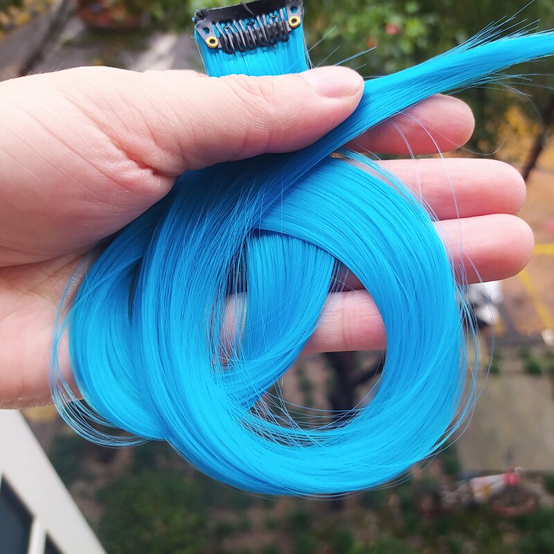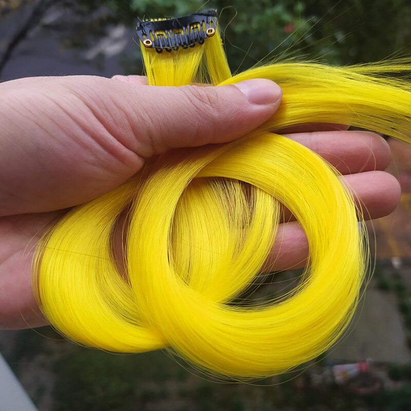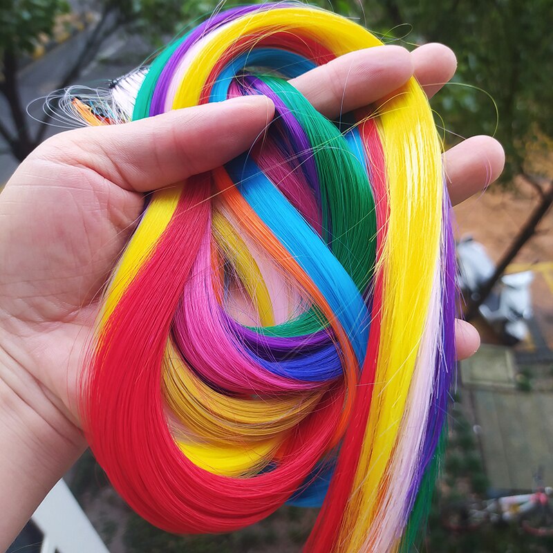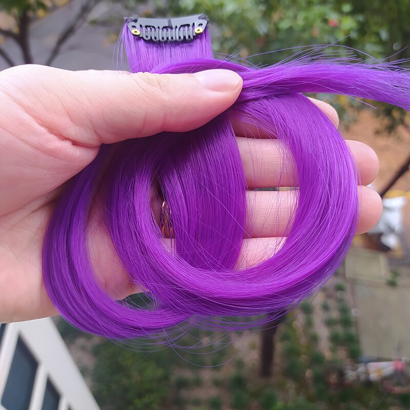 1 Pcs Moda Menina Colorido Sem Costura Pedaço Reta Longa Peruca De Cabelo Com Cor Clipe Pedaço De Extensão Do Cabelo