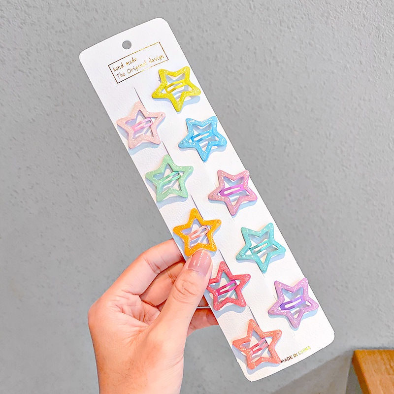 10PCS Novo Fofo Fashion Girls Colorful Star Waterdrop Shape Hairpins Kids Sweet Hair Accessories