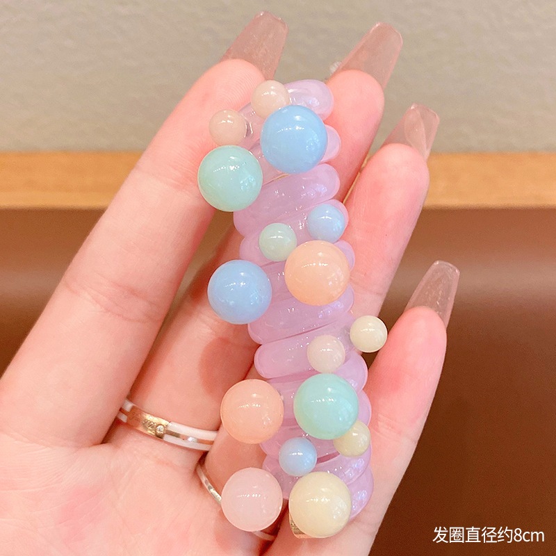 1 Peça Nova Cor Do Arco-Íris Bonito Alta Elástica Espiral Corda De Cabelo Cabeça Rabo De Cavalo Anel Faixa De Borracha C