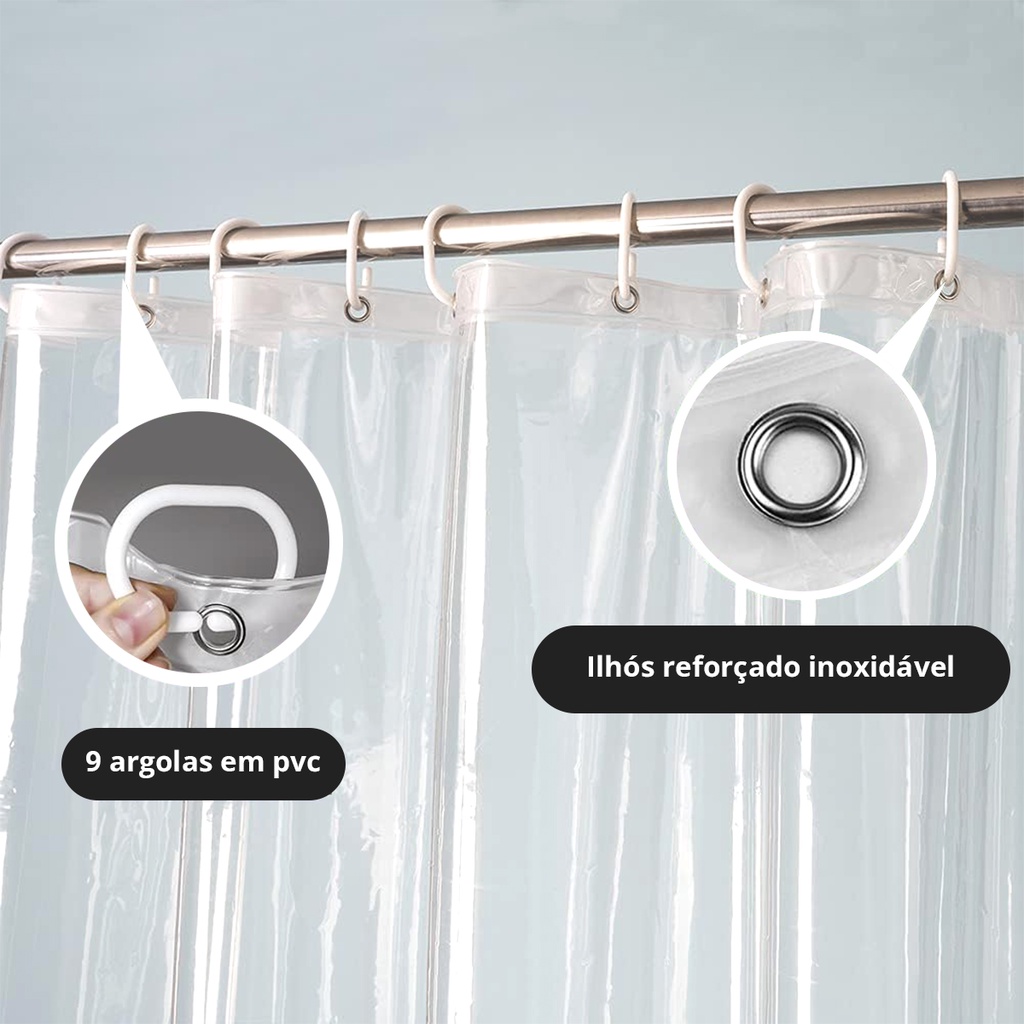 1 Cortina Box Banheiro PVC Transparente Antimofo Ilhós 2,30m