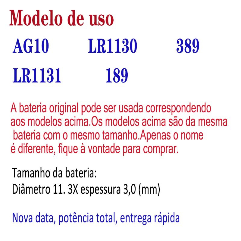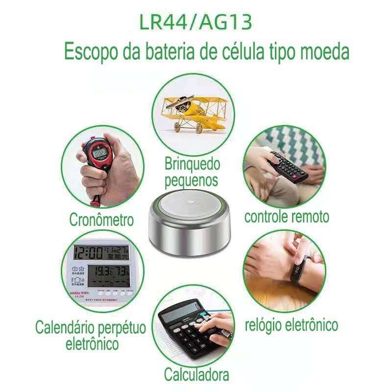LR1130 389 AG10 LR1131 AG13 LR44 Bateria de botão de bateria para calculadora de controle remoto de relógio eletrônico