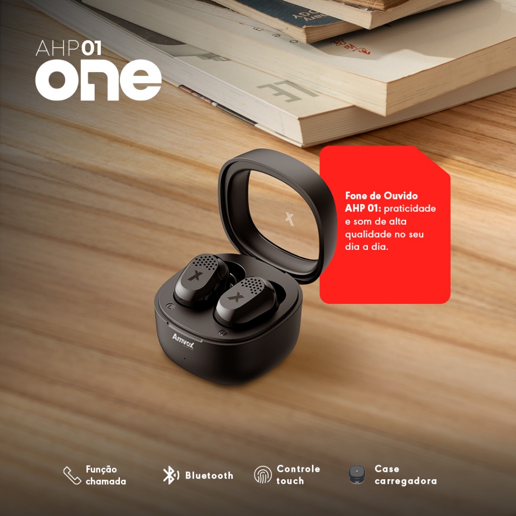 Fone de ouvido intra-auricular Amvox AHP 01 one bluetooth até 8h de bateria