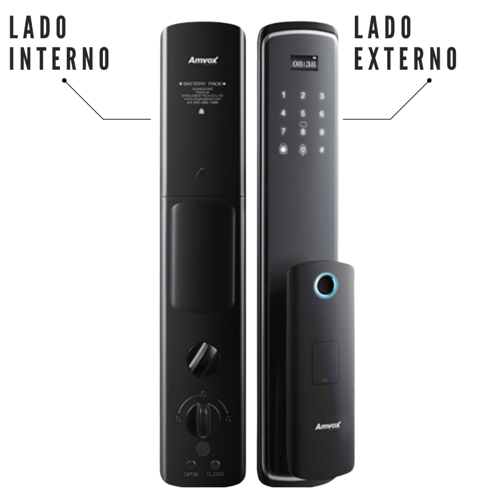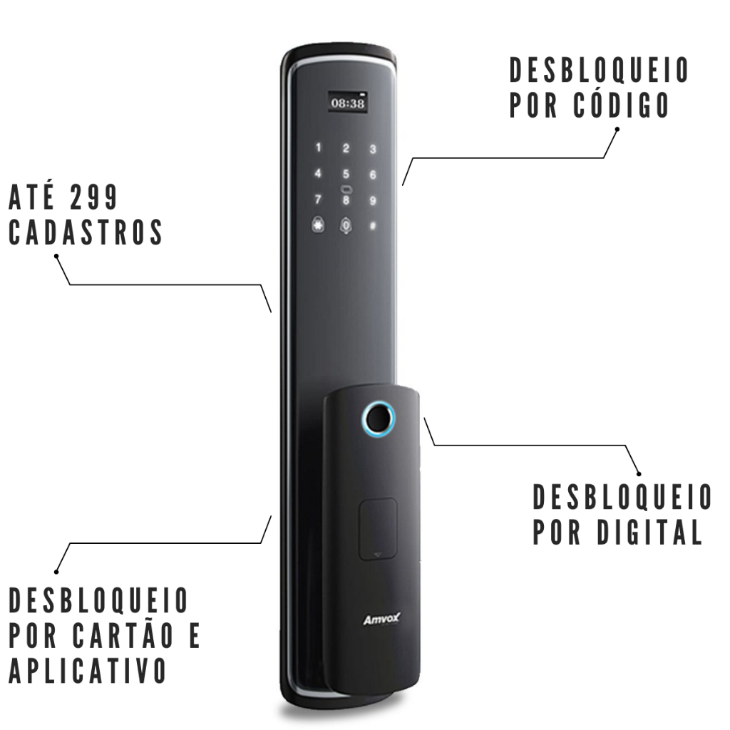 Fechadura eletrônica digital Amvox AFC 2000 conexão WIFI desbloqueio código, cartão, digital e APP