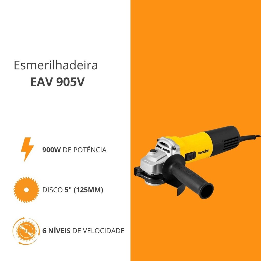 Esmerilhadeira EAV 905V VONDER 5" com Regulagem de Velocidade 900W rosca do eixo M14