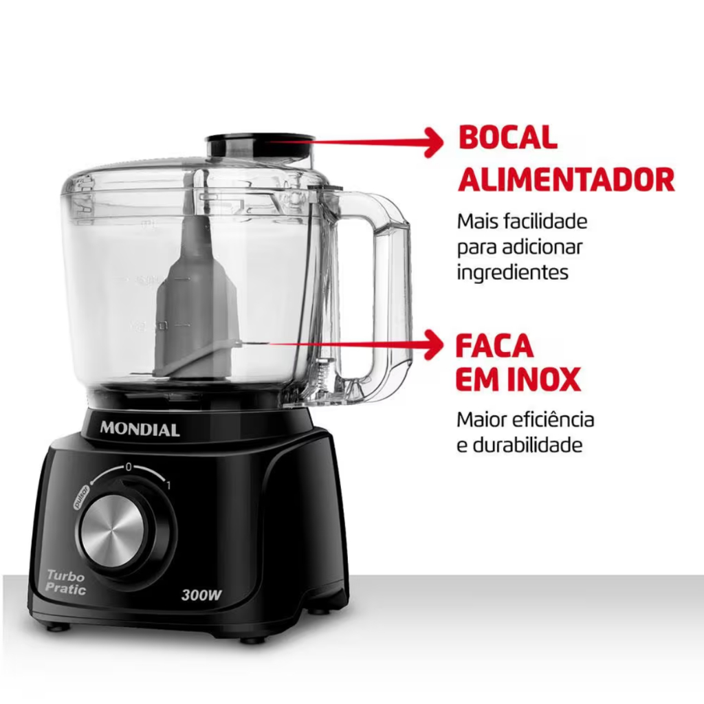 Mini processador Mondial MP-16-B 300W 500ML 1 Velocidade + Pulsar Faca em Inox