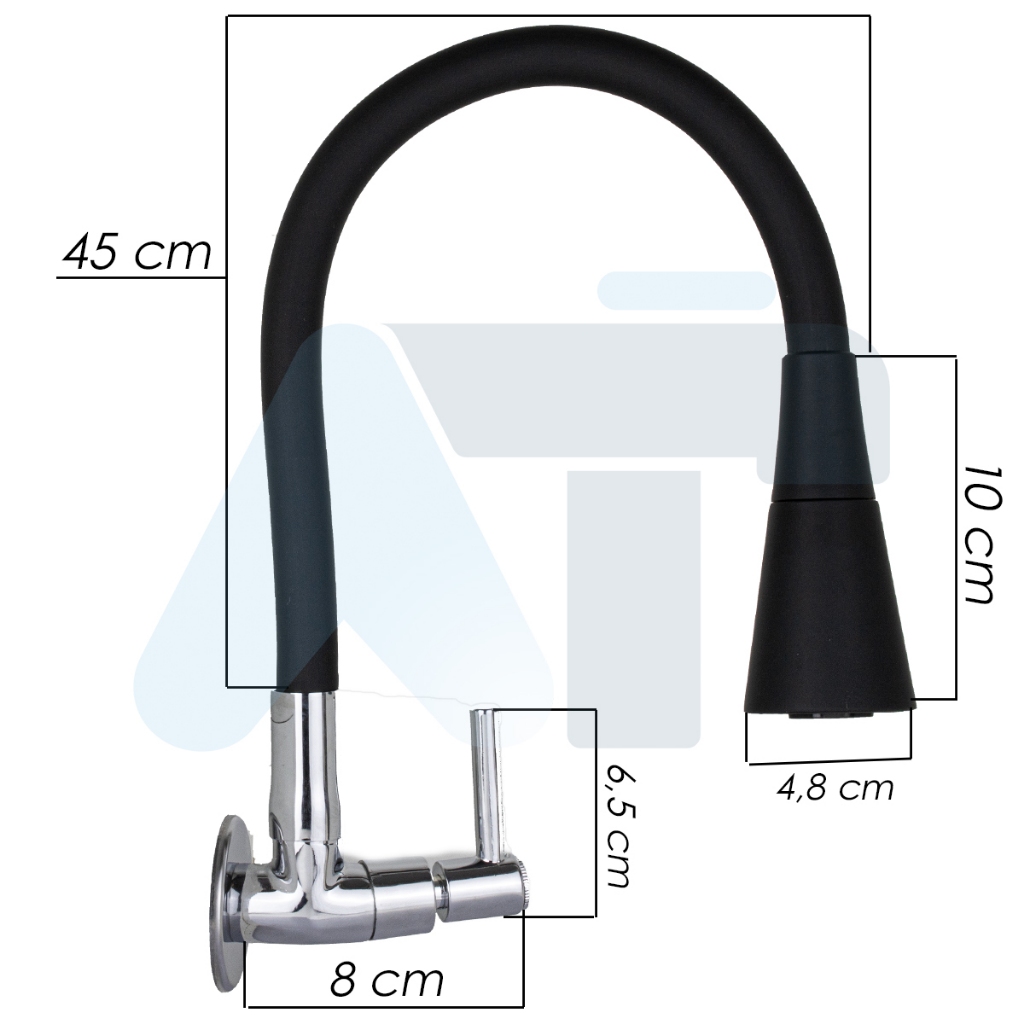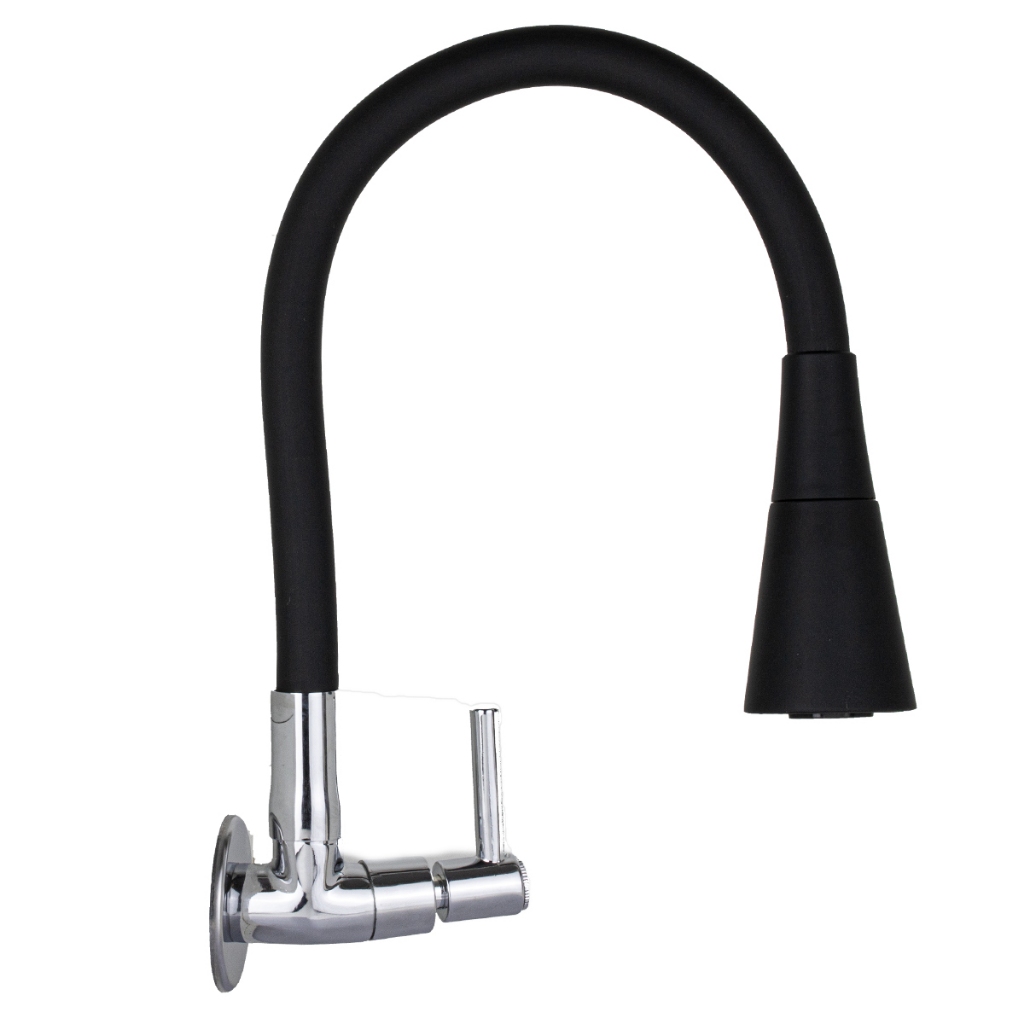 Torneira de Cozinha de Parede Gourmet Preta Flexivel 2 Jatos 1/4 de volta para pia