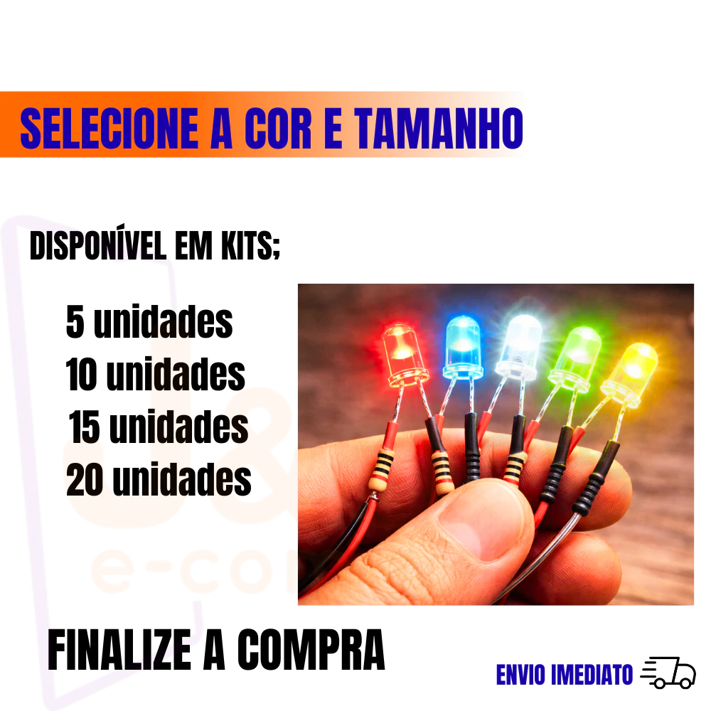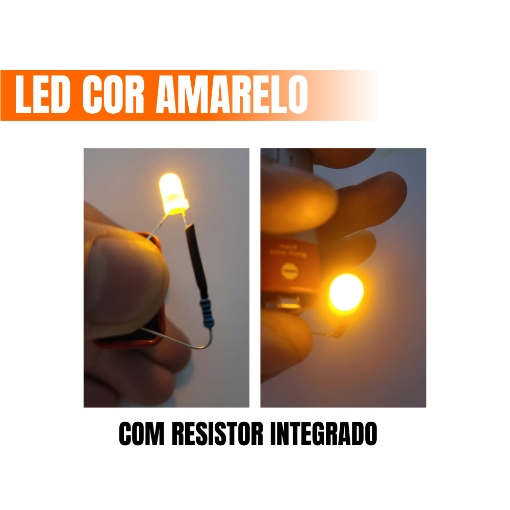 LED Flat Top 3mm e 5mm Com Resistor Integrado 12V, Azul Vermelho Verde Amarelo Branco Kit 5 10 15 20