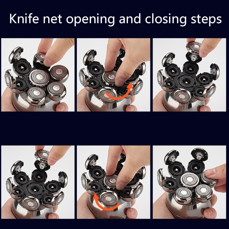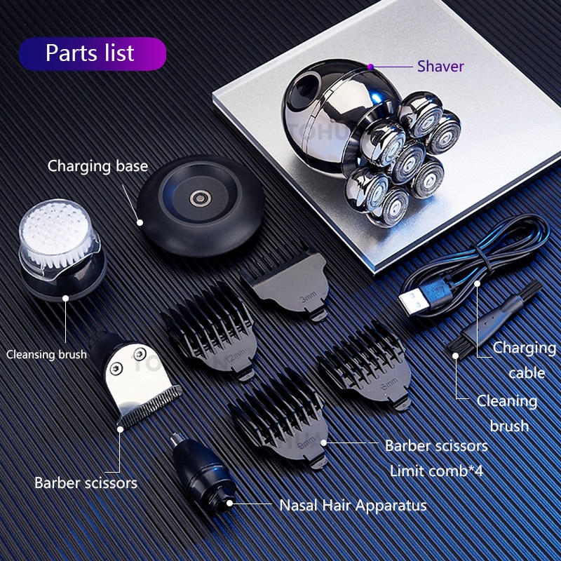 Barbeador Super Elétrico 7D Para Homens Rápido Rotativo Múmido E Seco Recarregável 6 Em 1 Kit De Higier Navalha