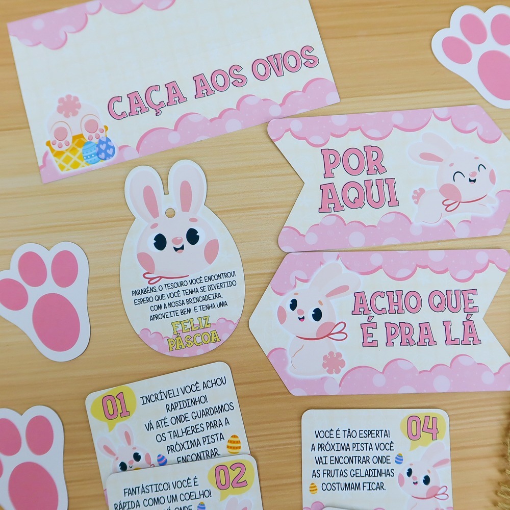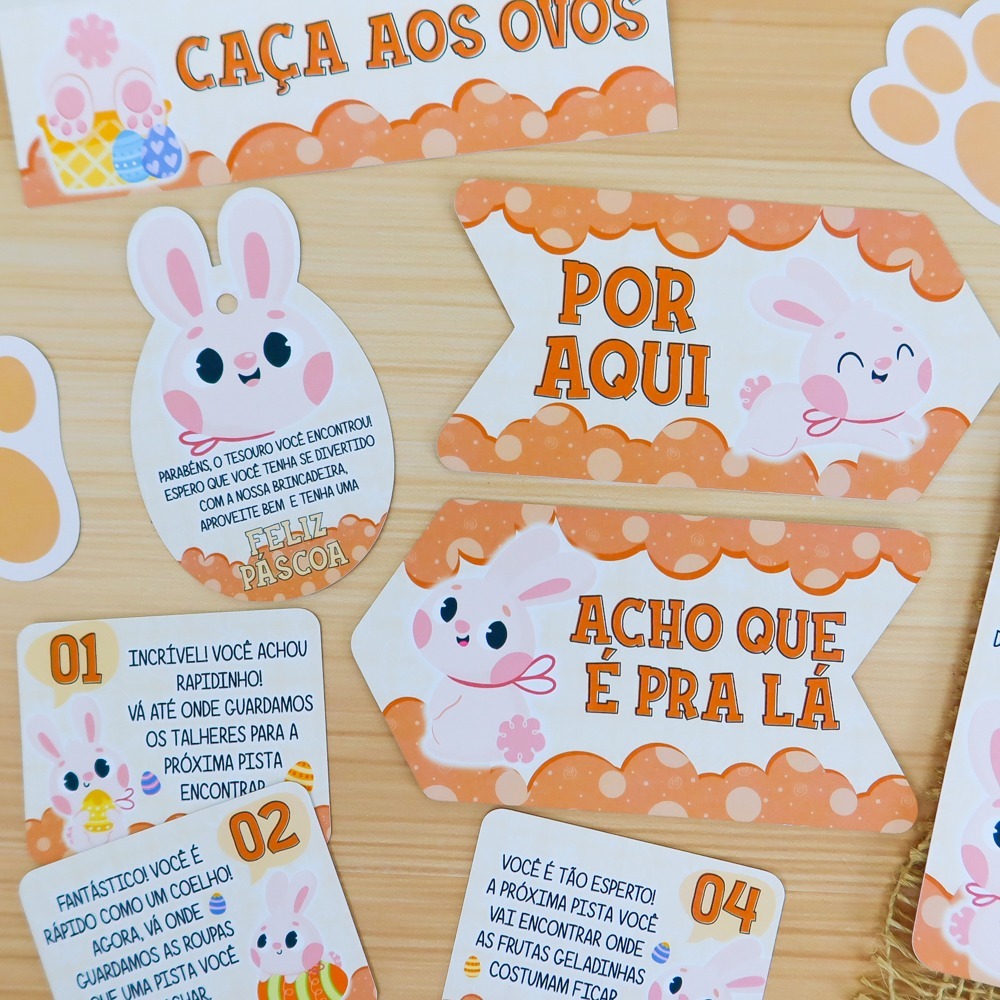 Kit Caça ao Tesouro Páscoa Infantil | Caça aos Ovos Criança | Patinhas Coelho + Pistas + Tag
