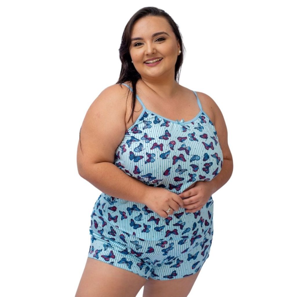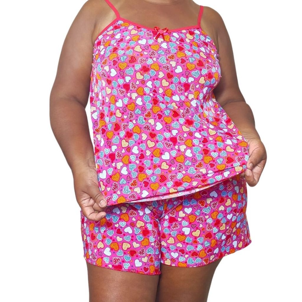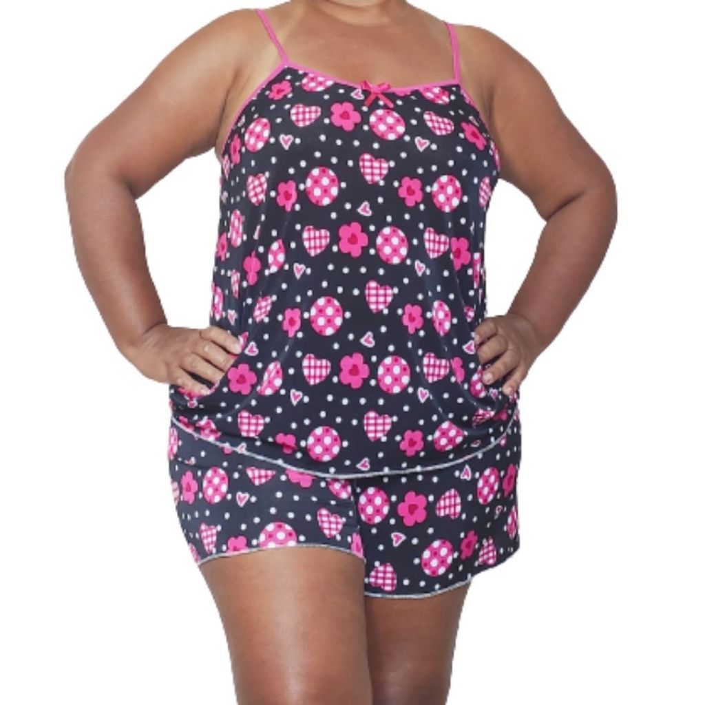 Kit com 3 Baby Doll Plus Size em Poliéster Estampado Feminino Short Doll Extra Grande Linha Noite.
