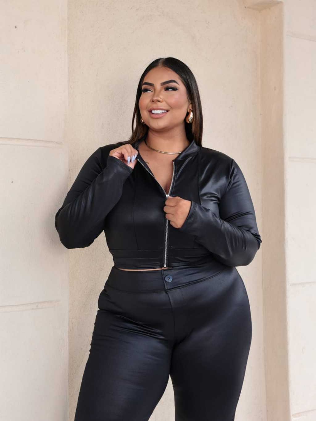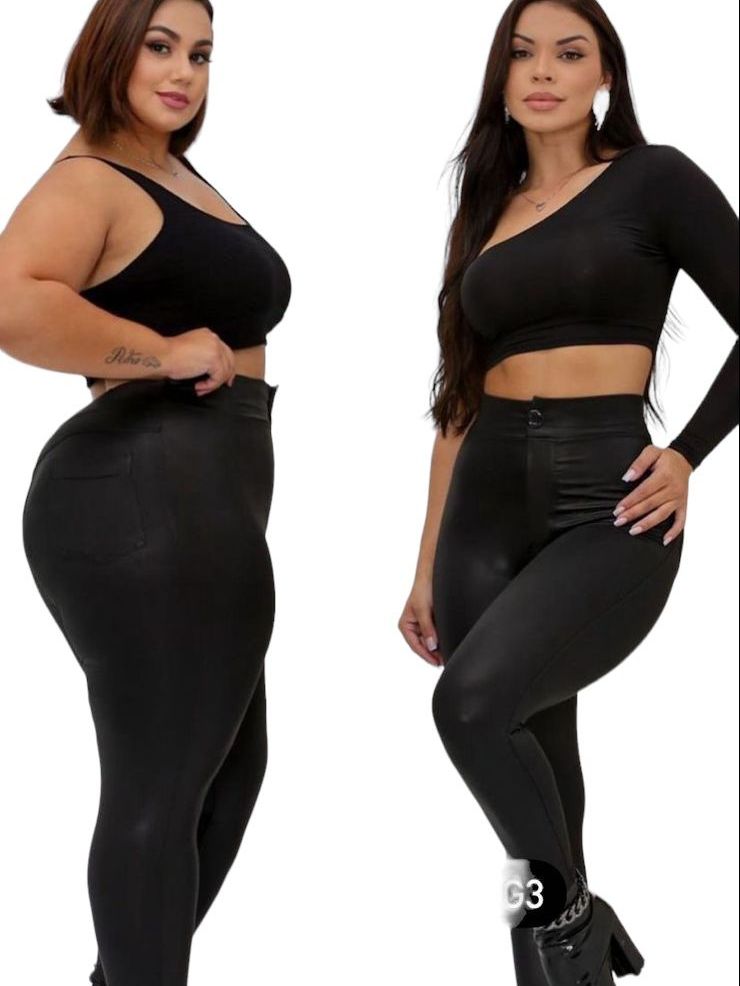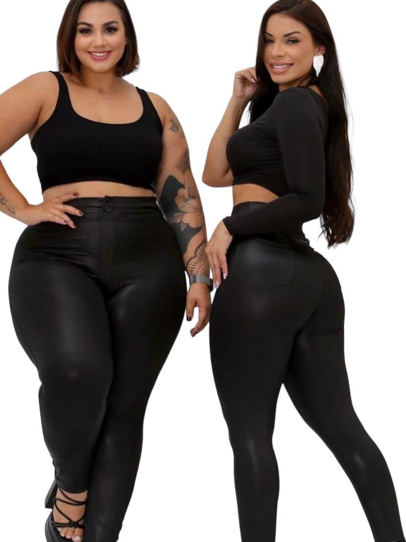 Calça Legging Disco Cintura Alta Cirre Couro Fake Bolsos Skinny Moda Feminina