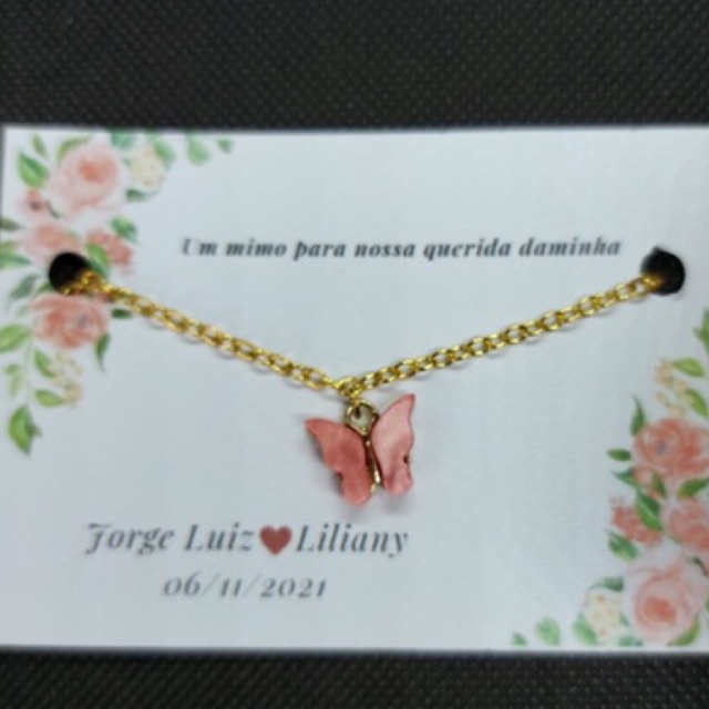 pulseira com borboleta para presentear madrinha e dama de casamento