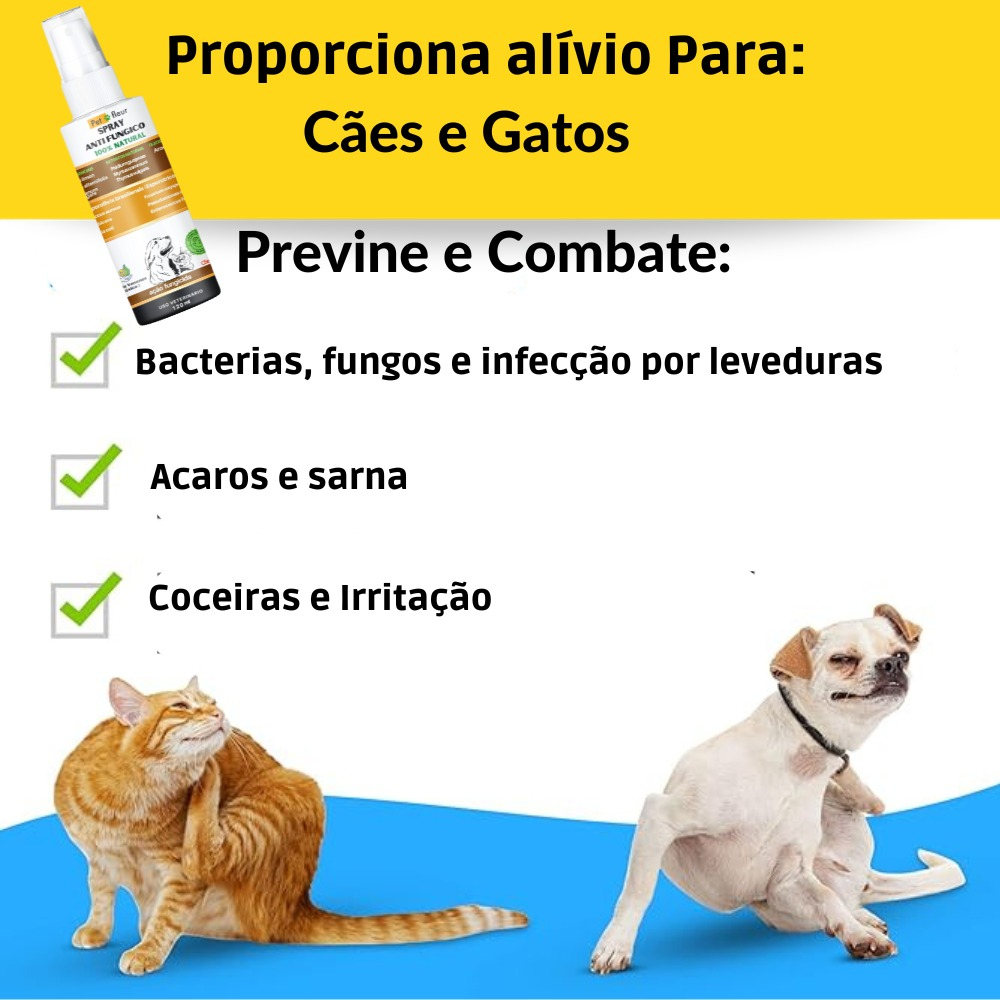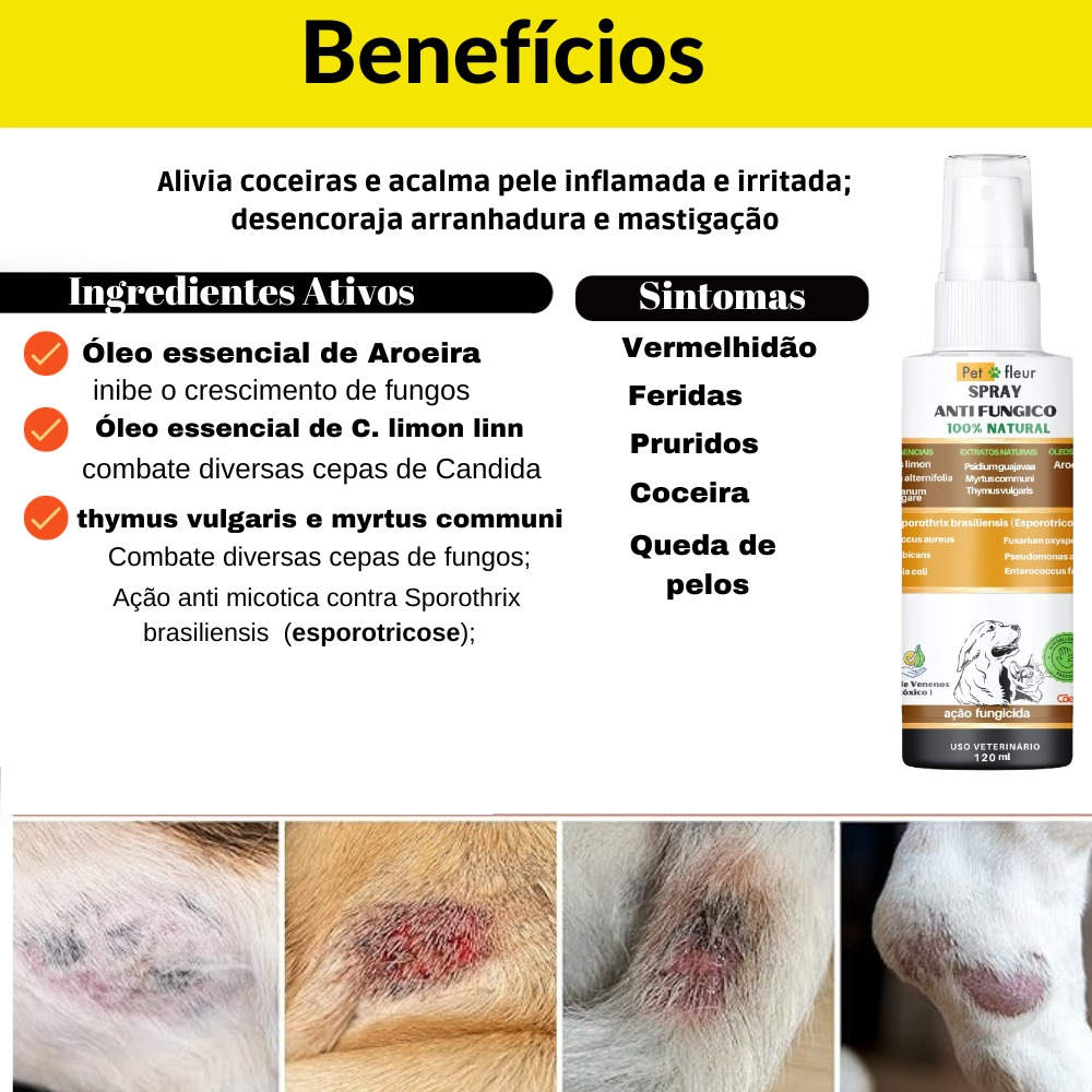 Spray 100% Natural Antifúngico Herbal para peles e pelos Caes e gatos