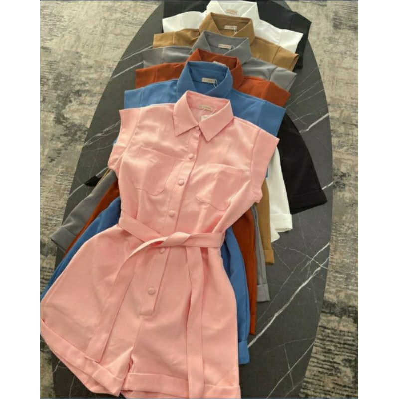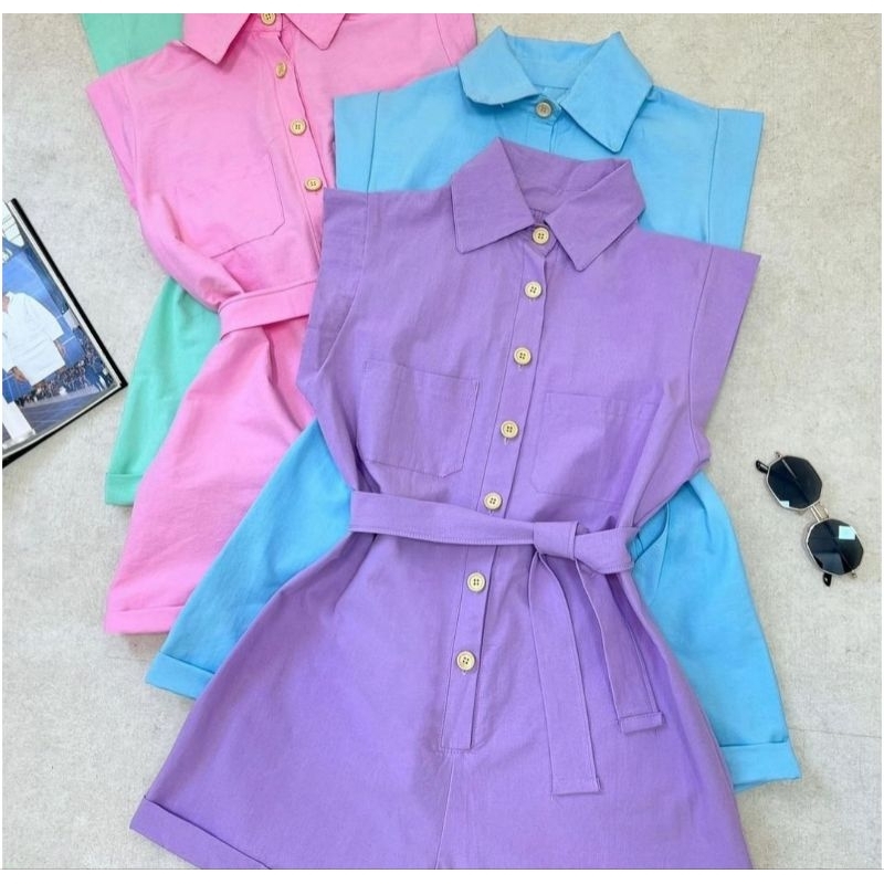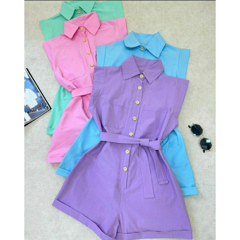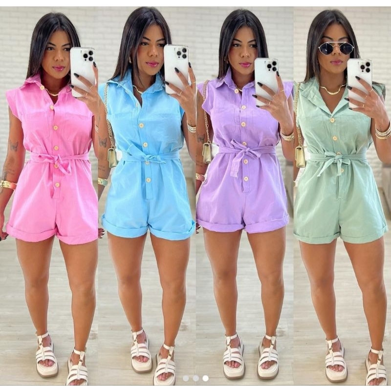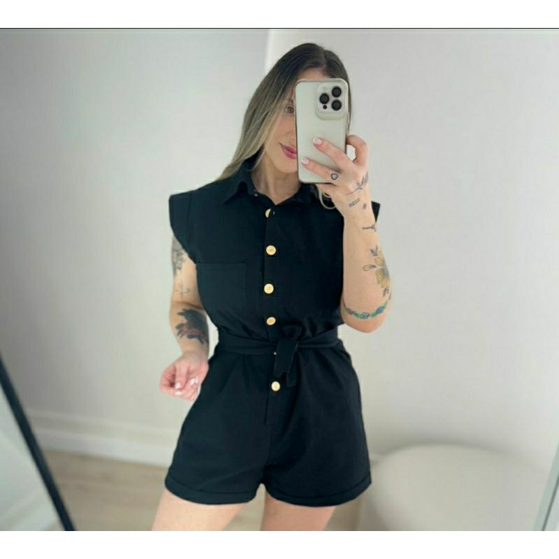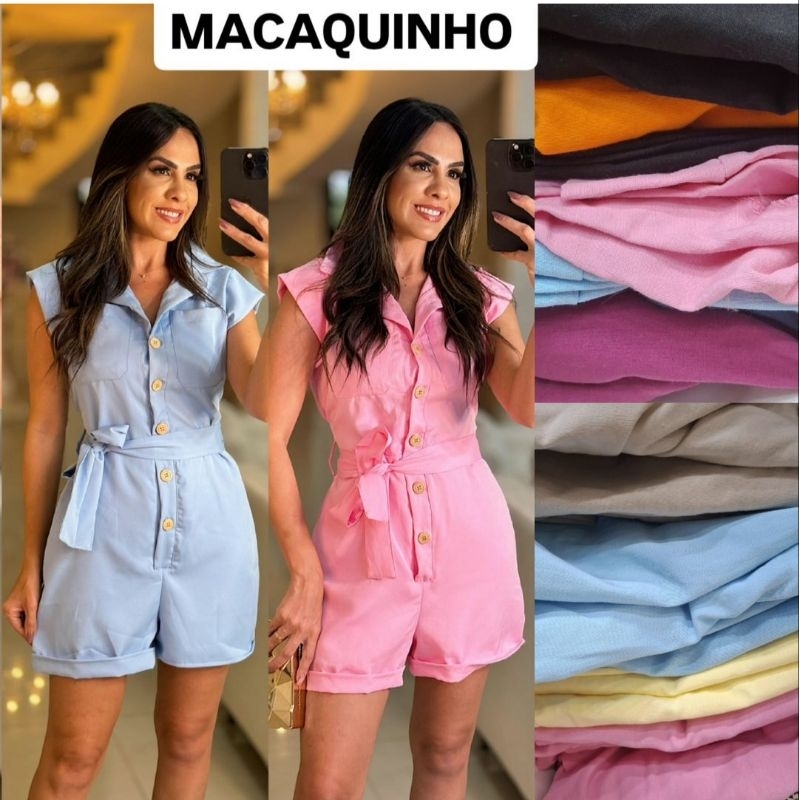 Macaquinho Feminino Virginia com Botões, Bolsos Frontais e Cinto Ajustável – Estilo Casual Elegante