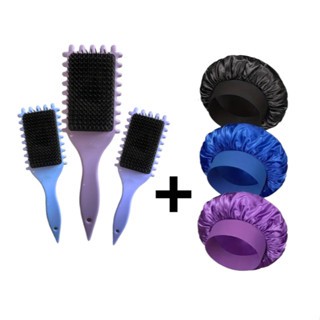 escova finalizadora de cachos kit 1 touca de cetim com faixa 1escova (CORES SORTIDAS)