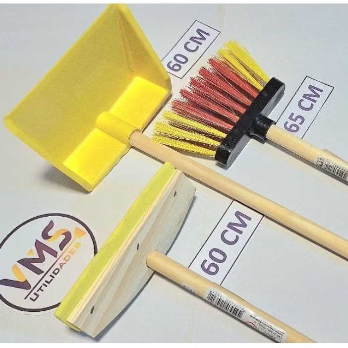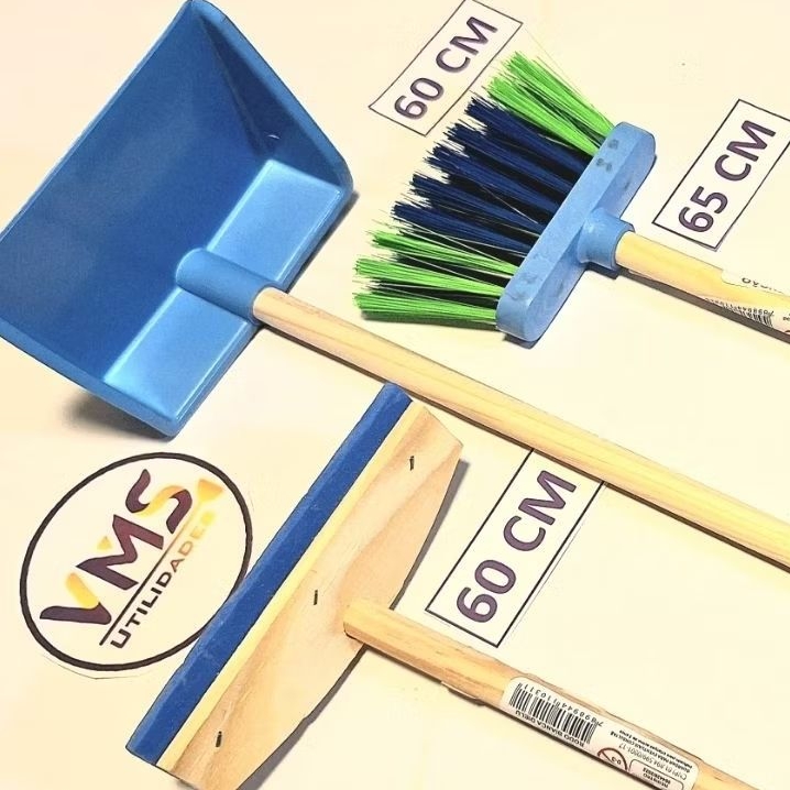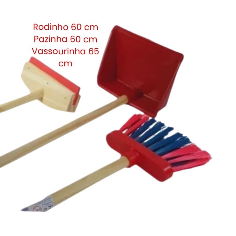 Kit Infantil Com Mini Vassoura Rodo e Pa Brinquedo de Criança Educativo Registro Inmetro vassourinha