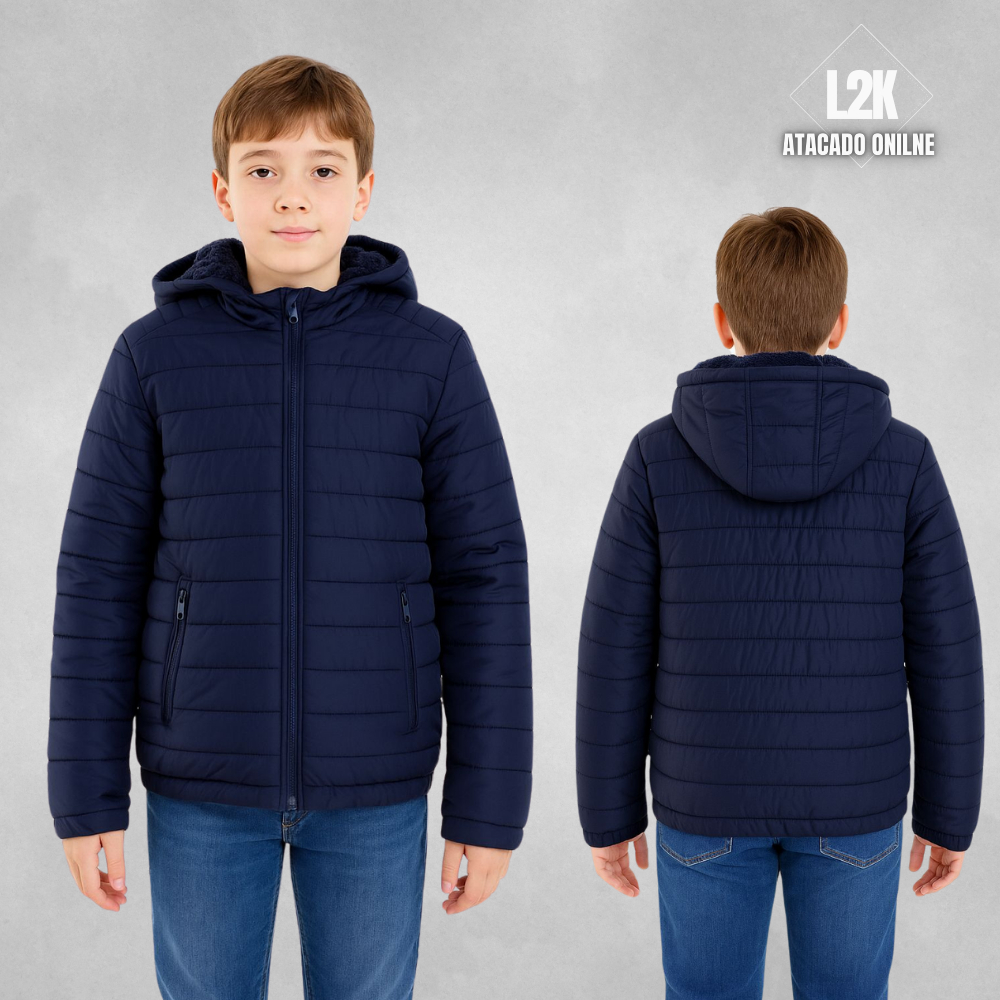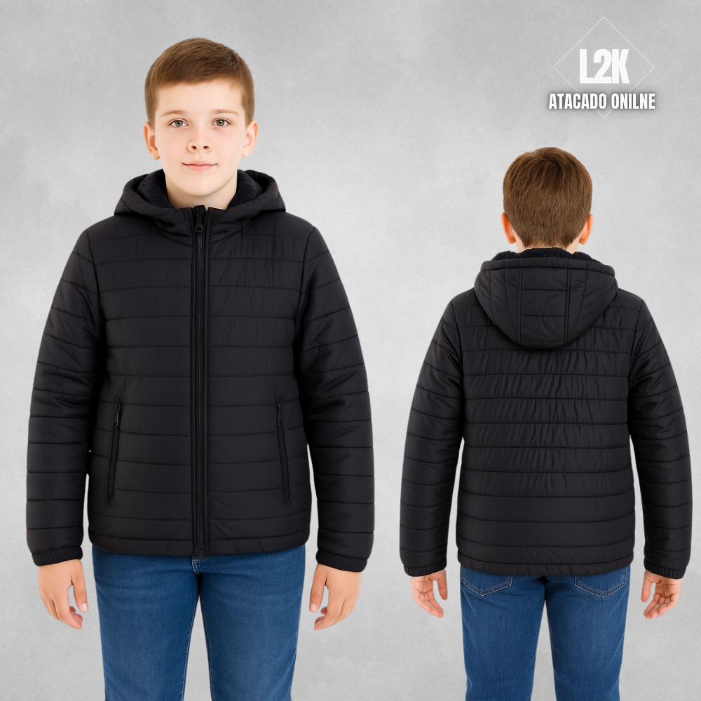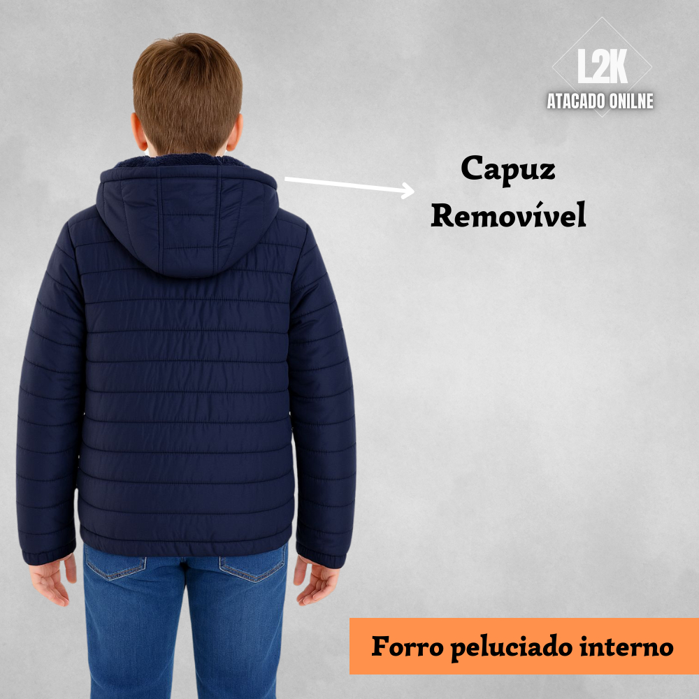 Jaqueta Infantil Juvenil Menino Masculina 4 6 8 10 12 14 16 Apeluciada com Forro Interno Preto Azul