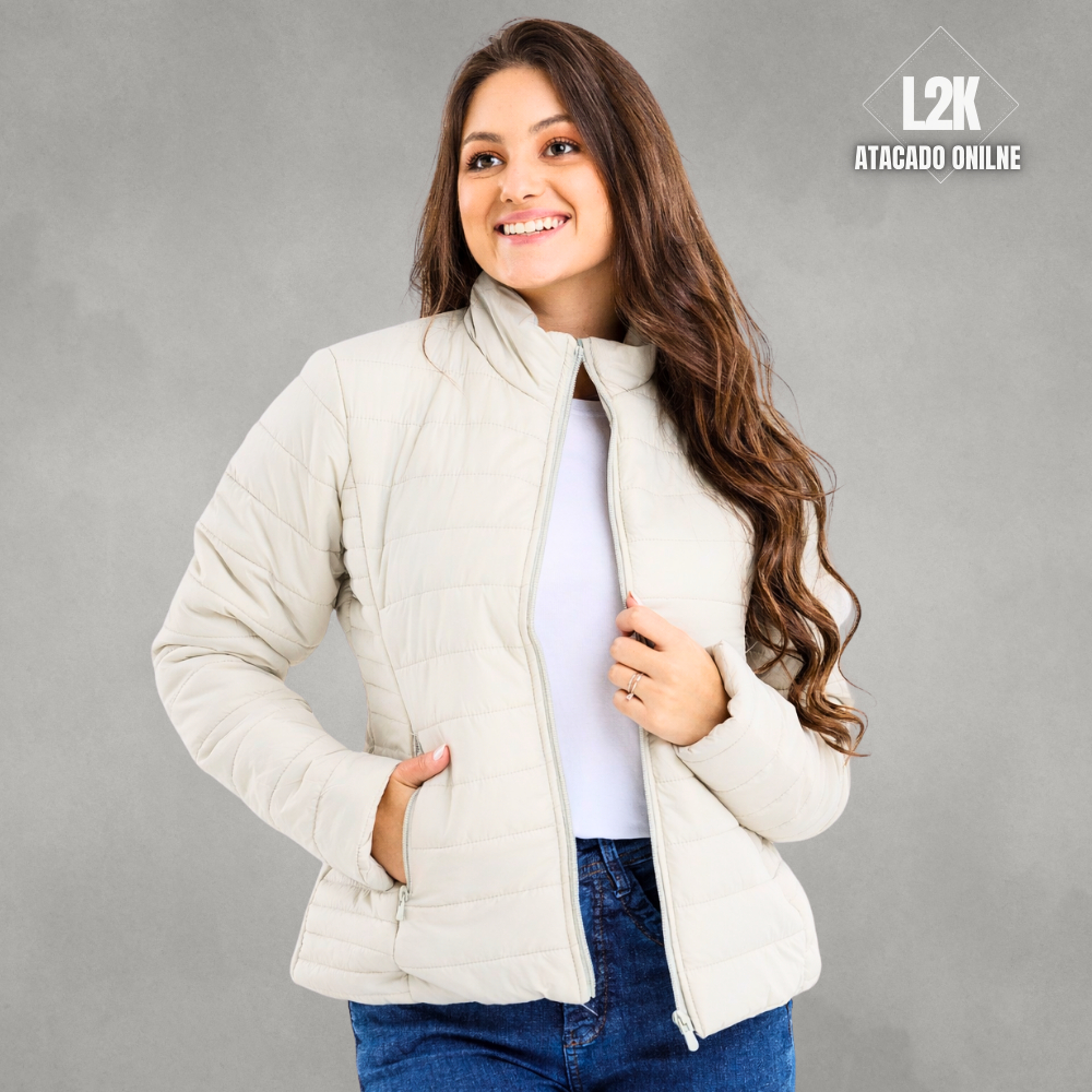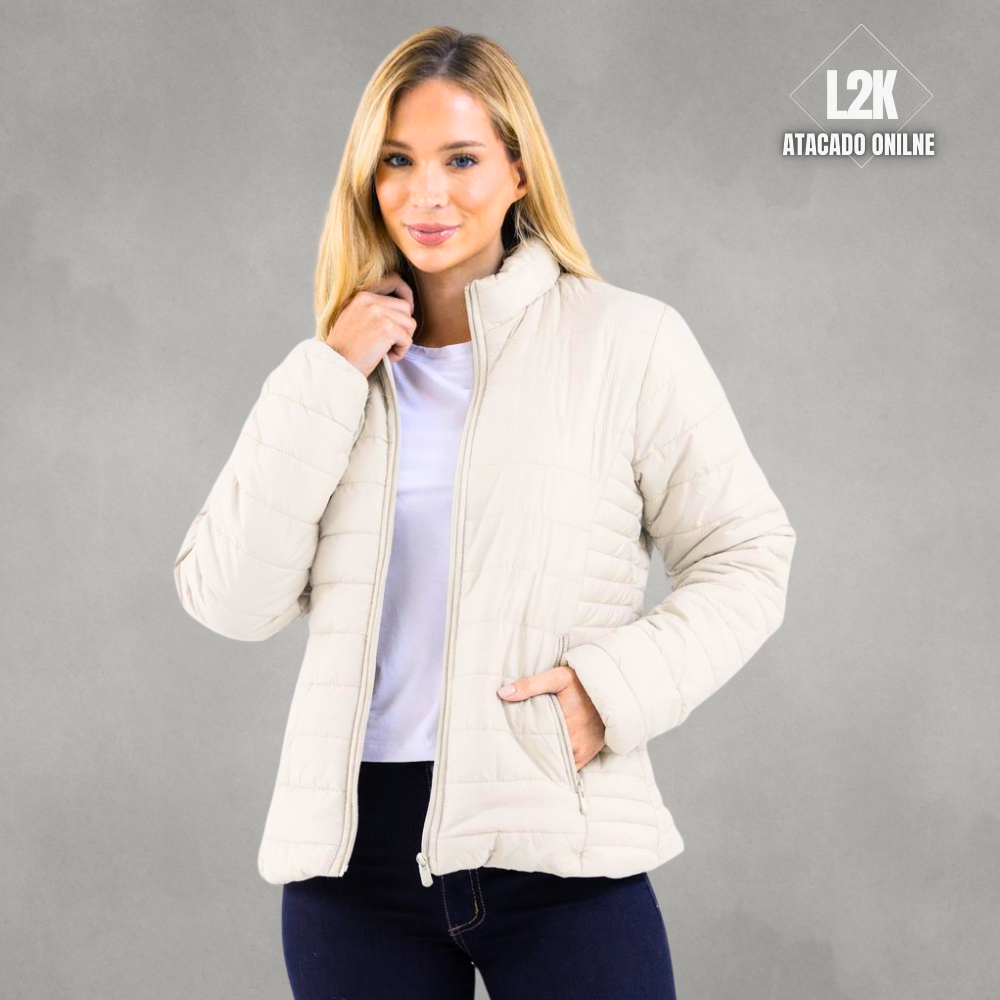 Jaqueta Bobojaco Puffer Feminina Apeluciada Por Dentro Com Forro Interno Preta Branca Marrom Bege