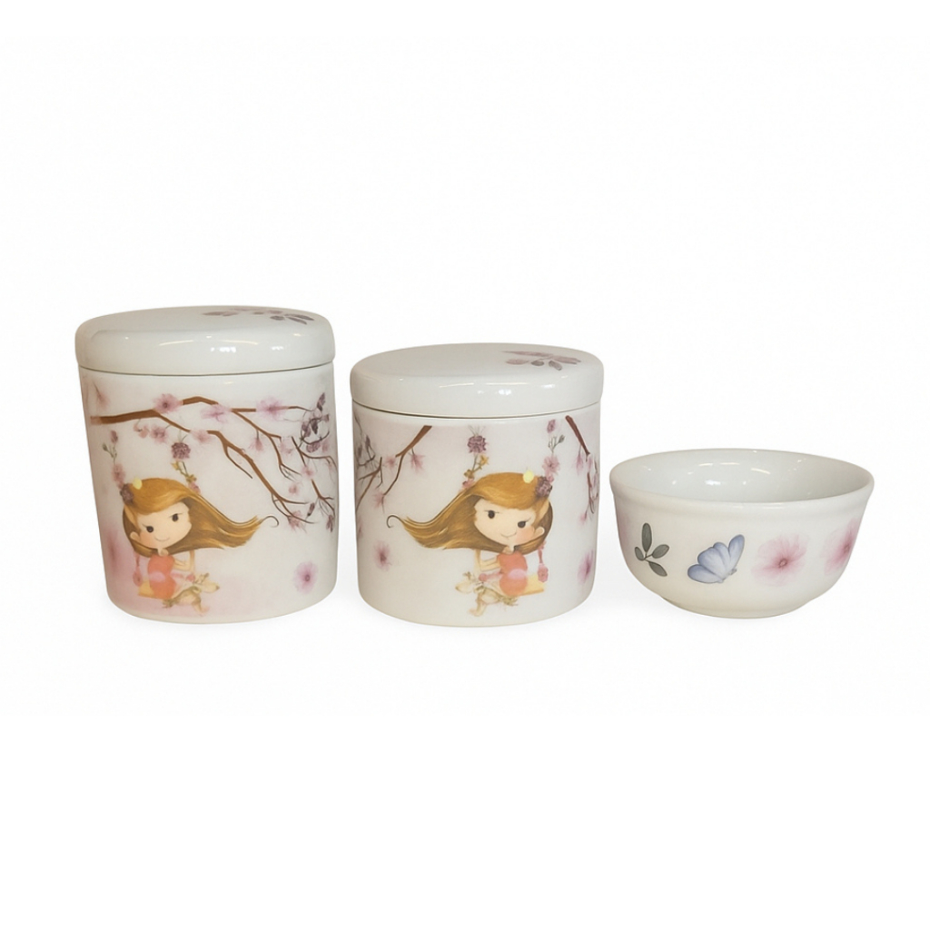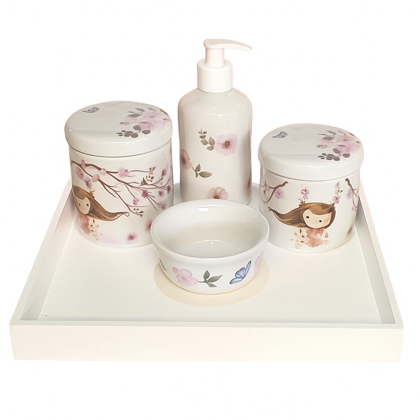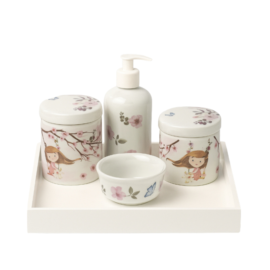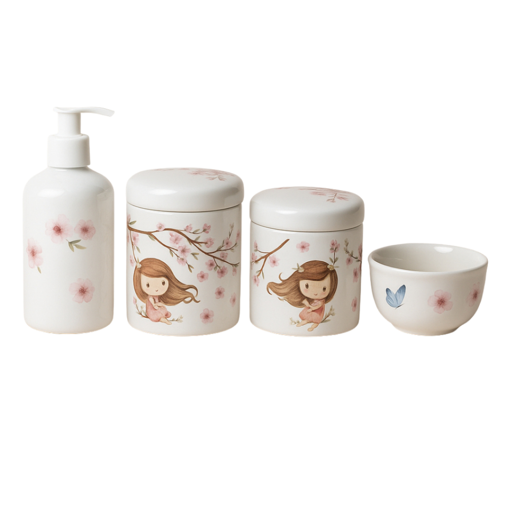 Kit Higiene Menina De Porcelana Branca Decorada