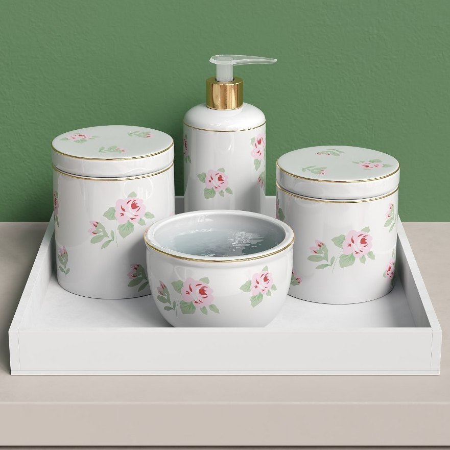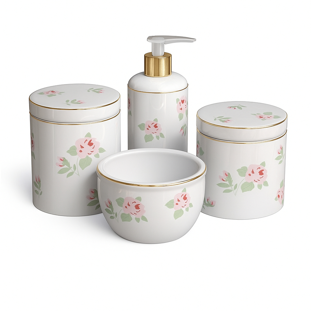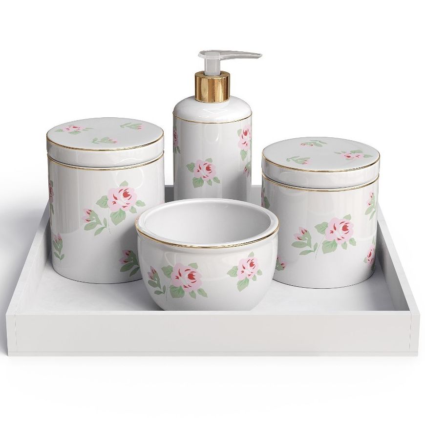 Kit Bebe Menina Flores Rosas Com Filete De Ouro