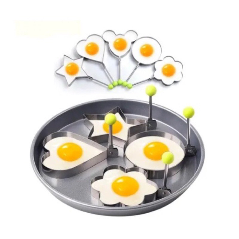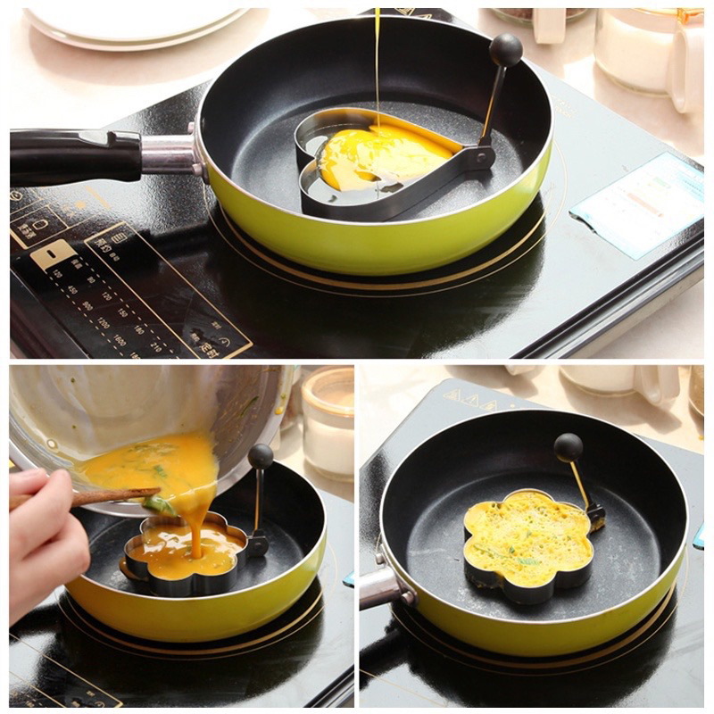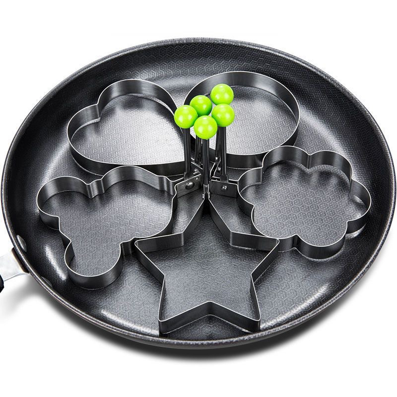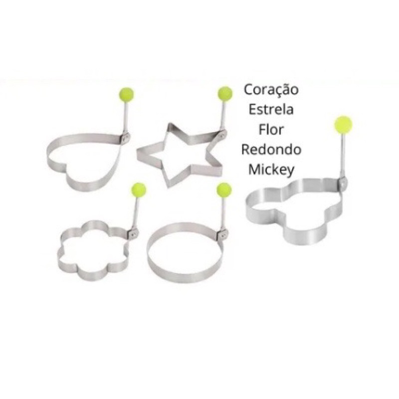 Kit 5pçs Forma Aço Inox Molde Fritar Ovos Omelete Tapioca Hamburguer Mickey, amor, flor de ameixa, estrelas, redondo