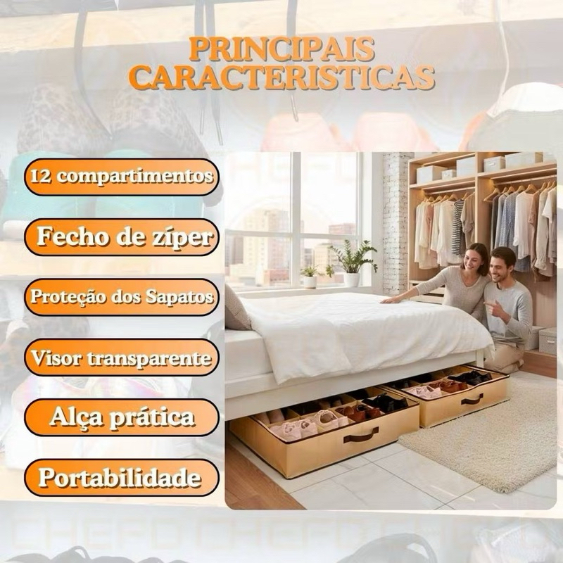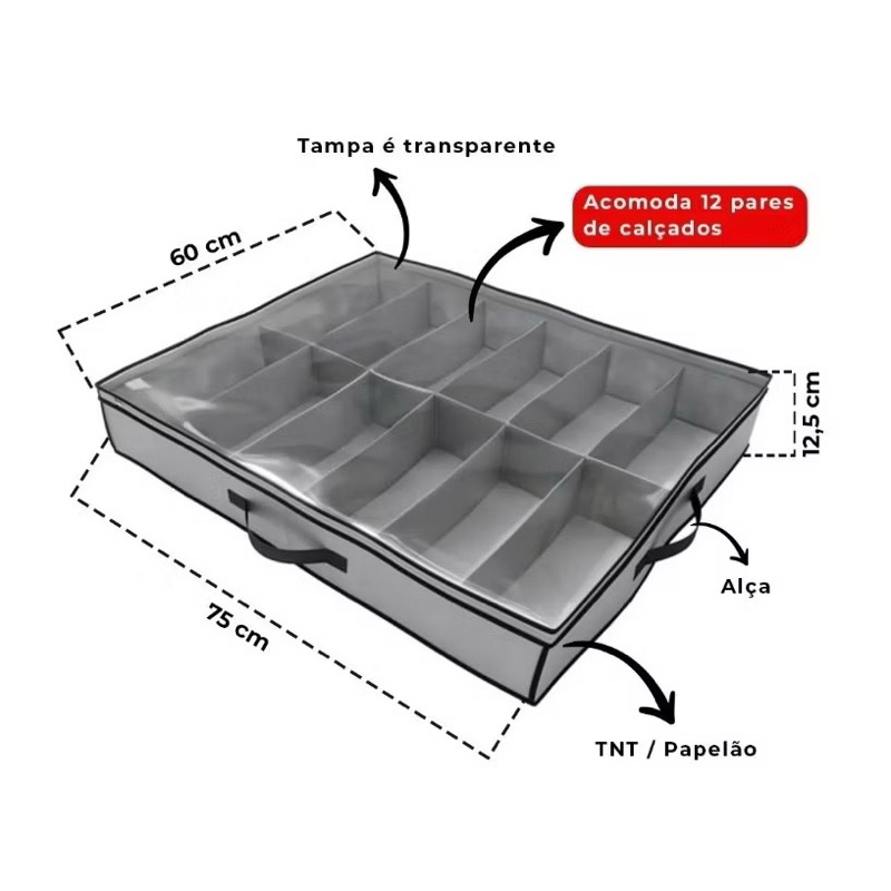 Caixa Organizadora Porta Sapatos 12 divisórias Tampa Transparente