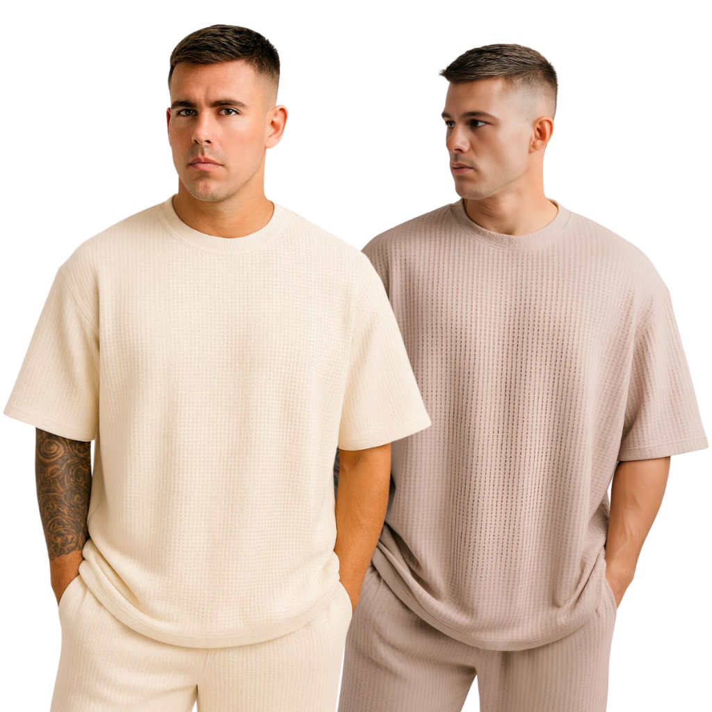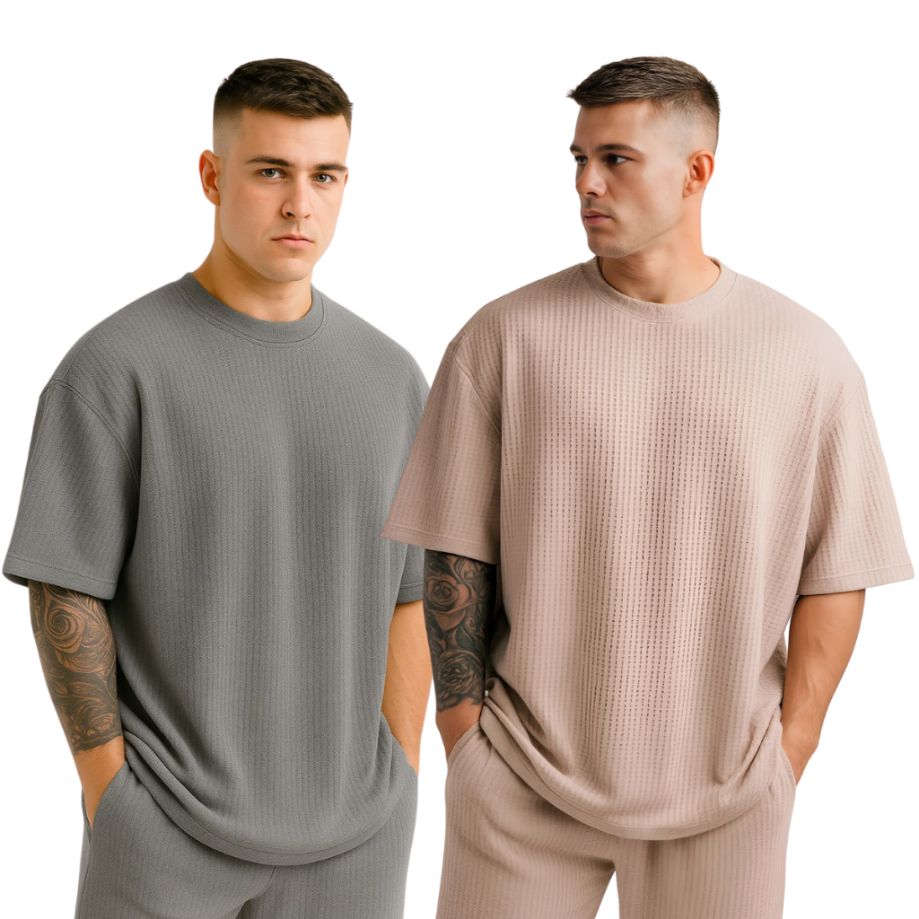 Kit 2 Camiseta Oversized Masculina Texturizada Casual Básica Lisa Premium