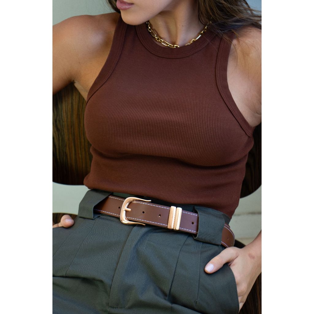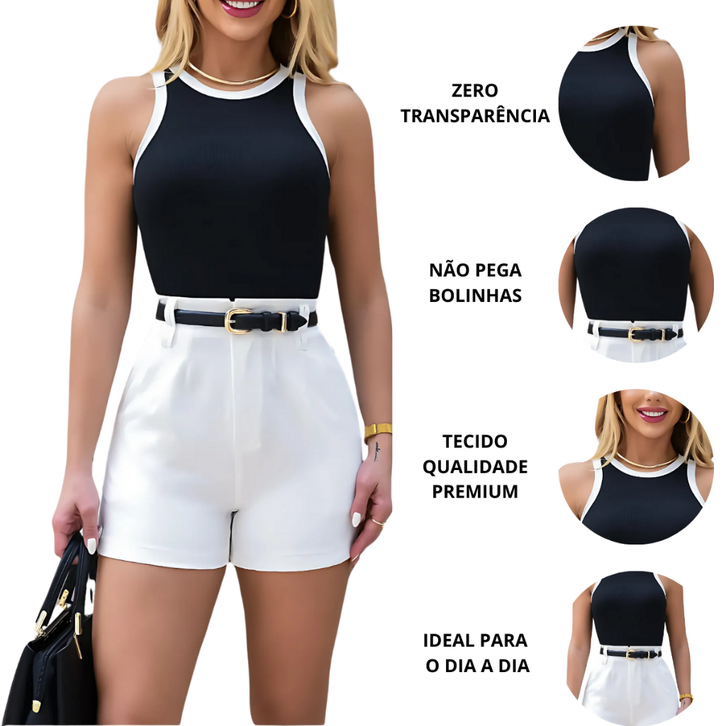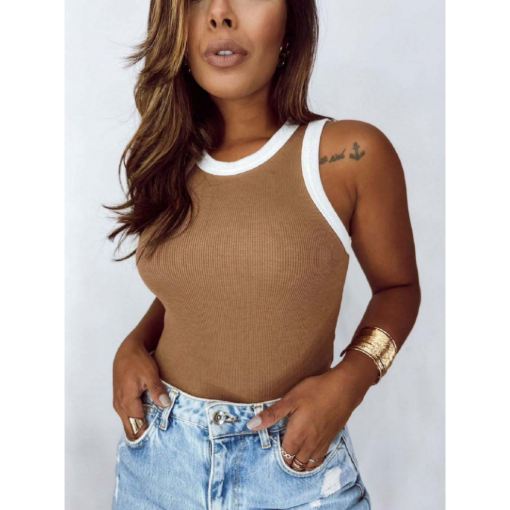 Regata Feminina Bicolor Canelada Algodão