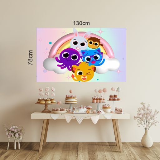 Painel Bolofofos Arco íris retangular de lona para decoração de festa de aniversário infantil. Várias medidas.