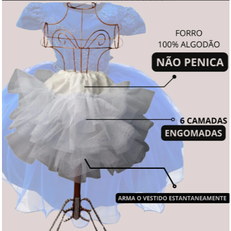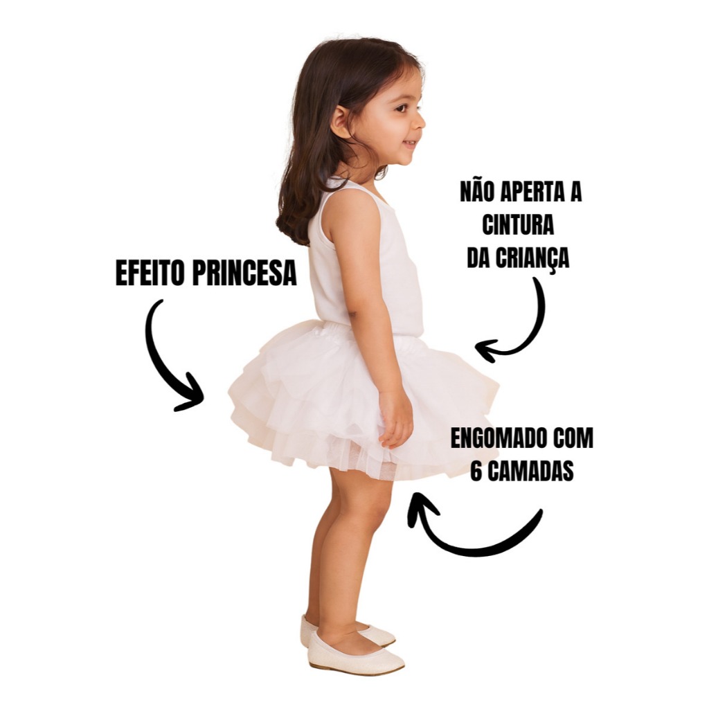 Saiote Infantil Bebê Tule Branco para Vestido de Festa Volume Daminhas Batizados Ensaios