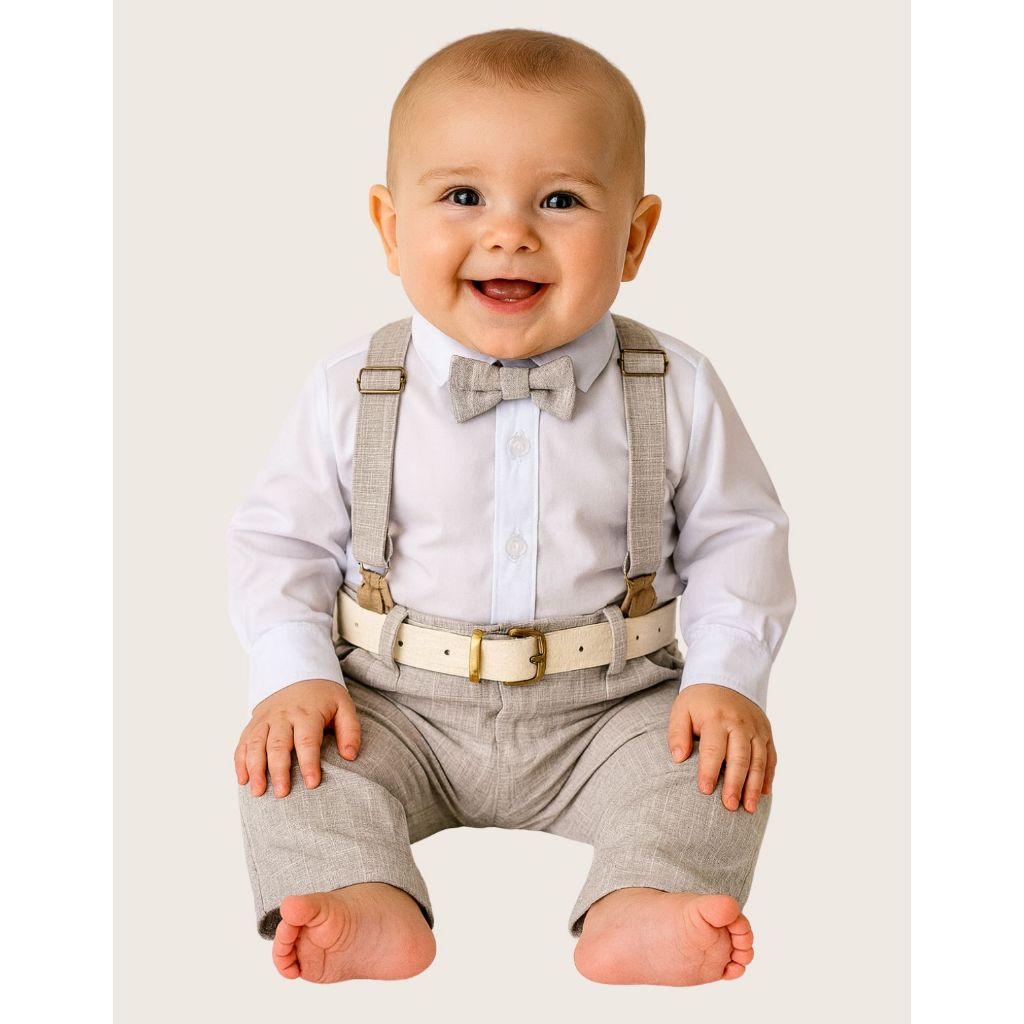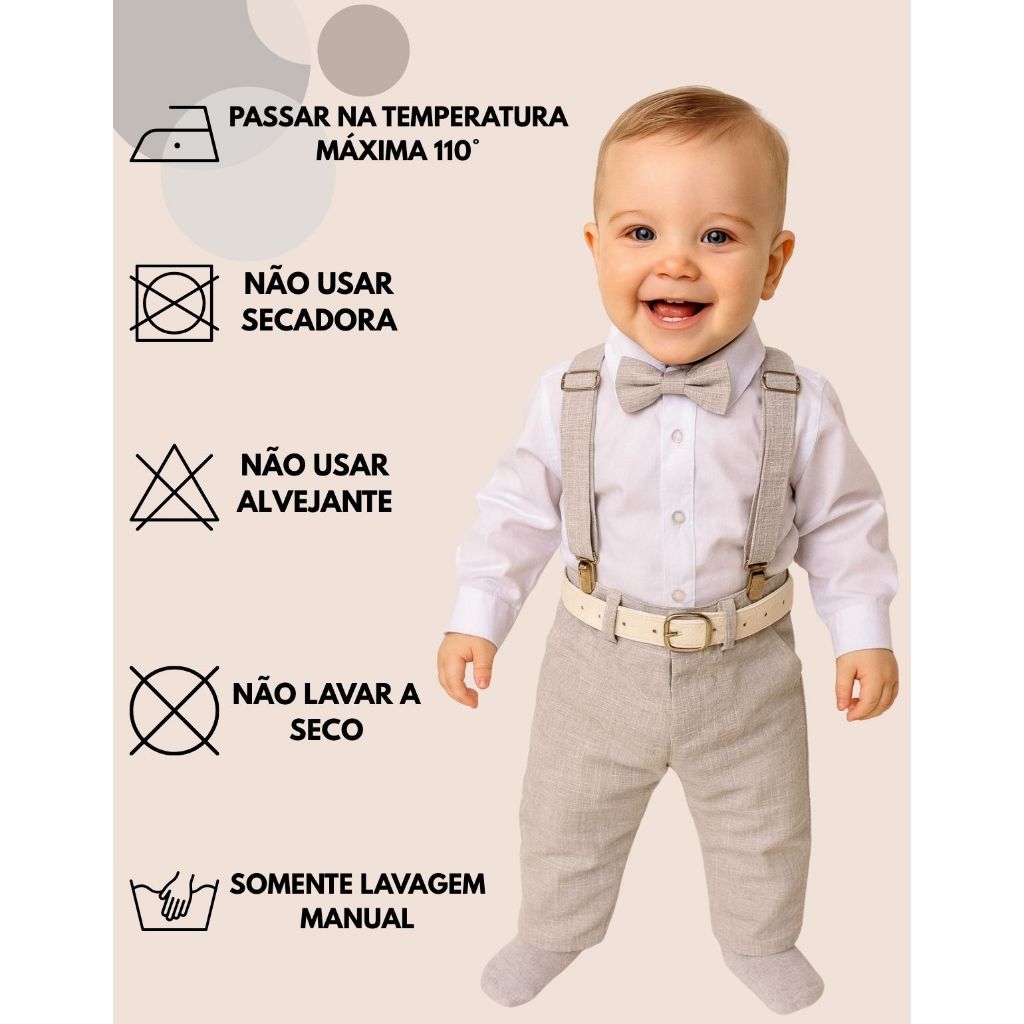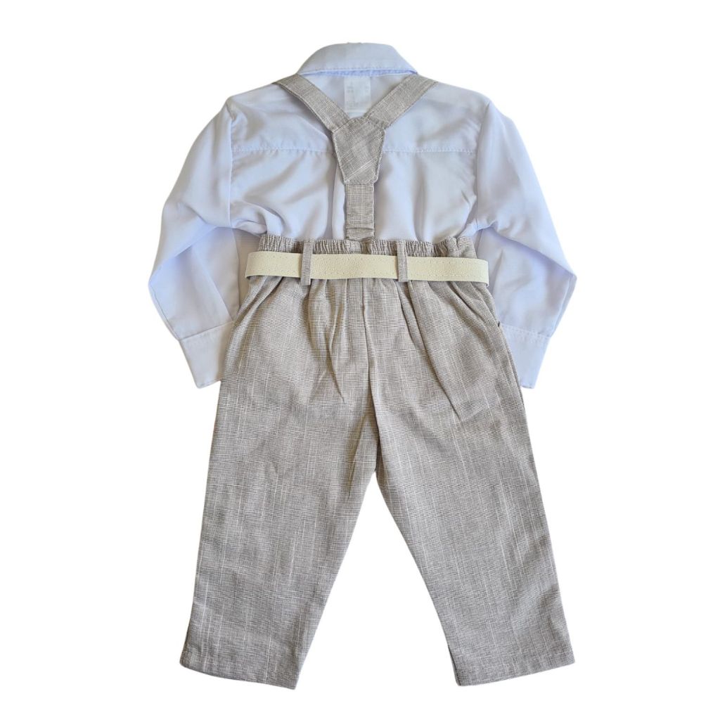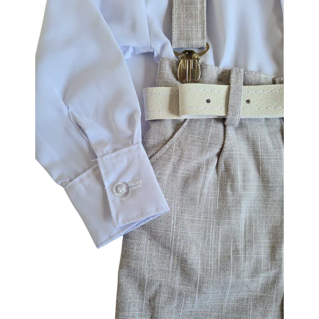 Conjunto Social Bebê Menino Camisa Branca + Calça com Suspensório Cinto Gravata Borboleta Batizado