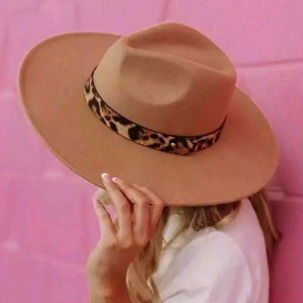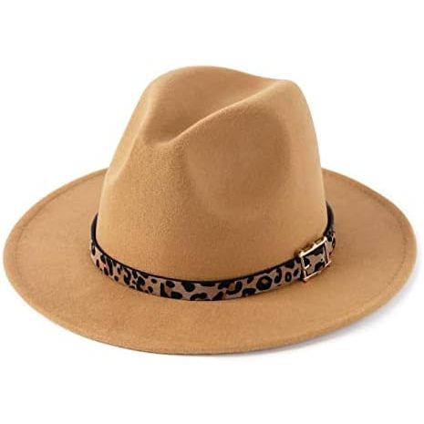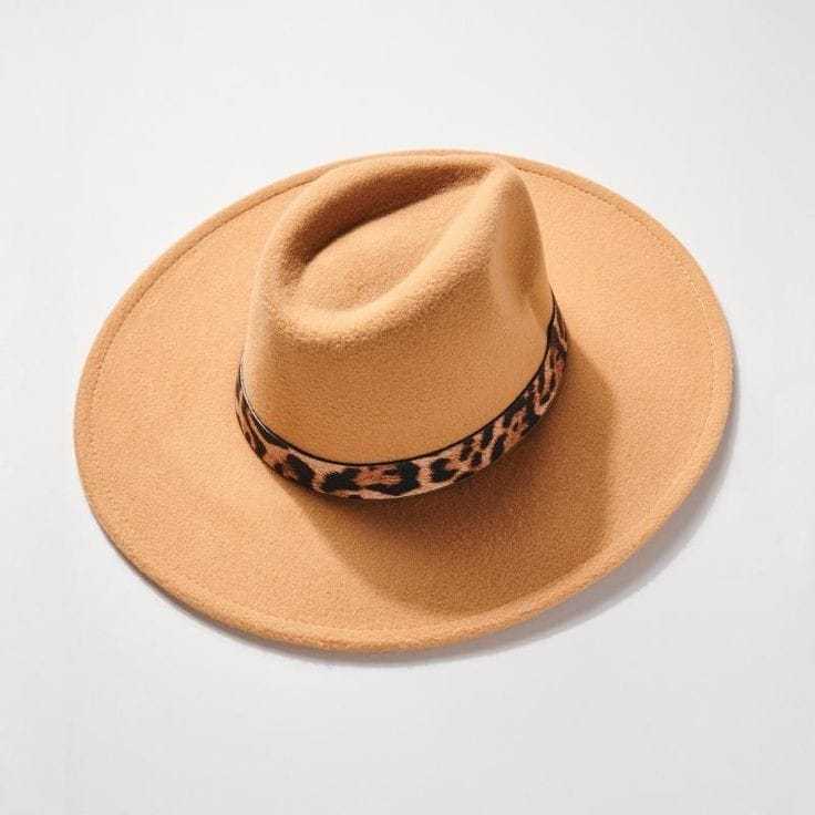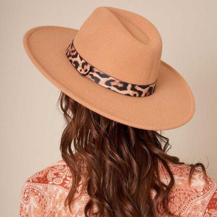 Chapéu Fedora Bege de Feltro Feminino com Cinta de Oncinha