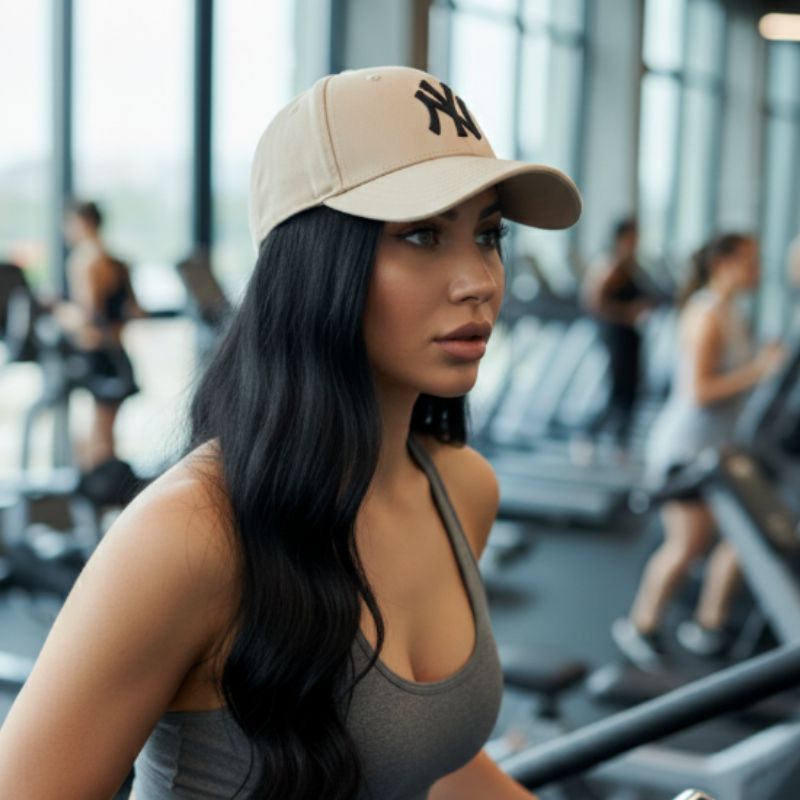Boné Niu Trucker Bege com Logo Preto Aba Curva Regulagem Fitão Unissex