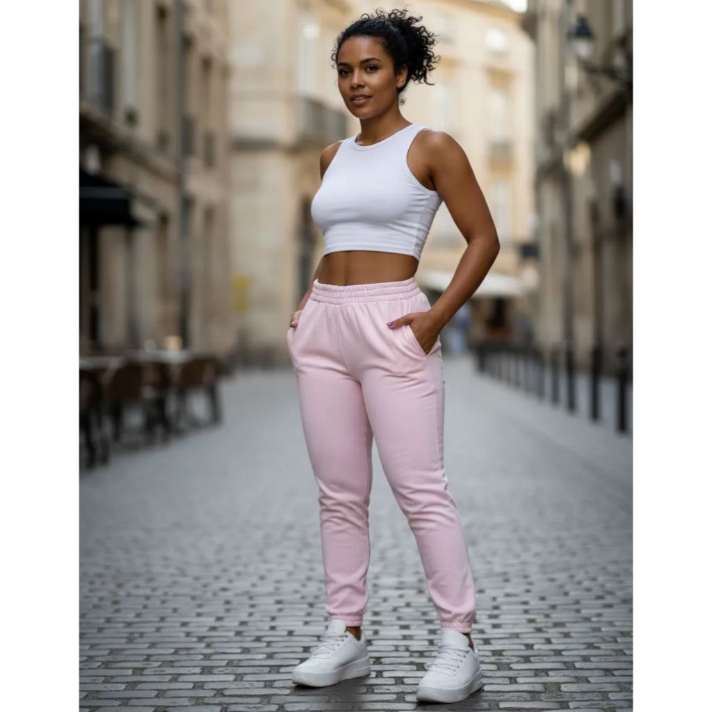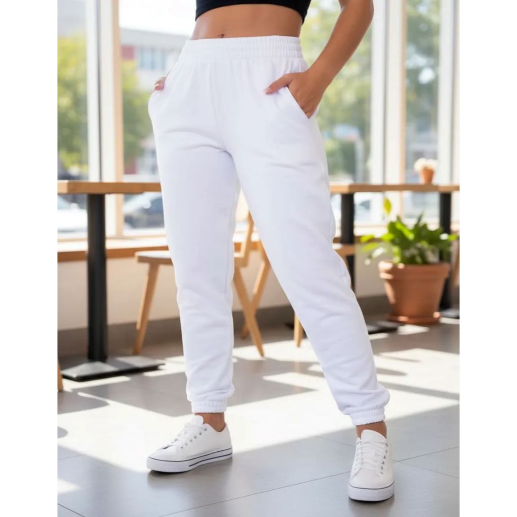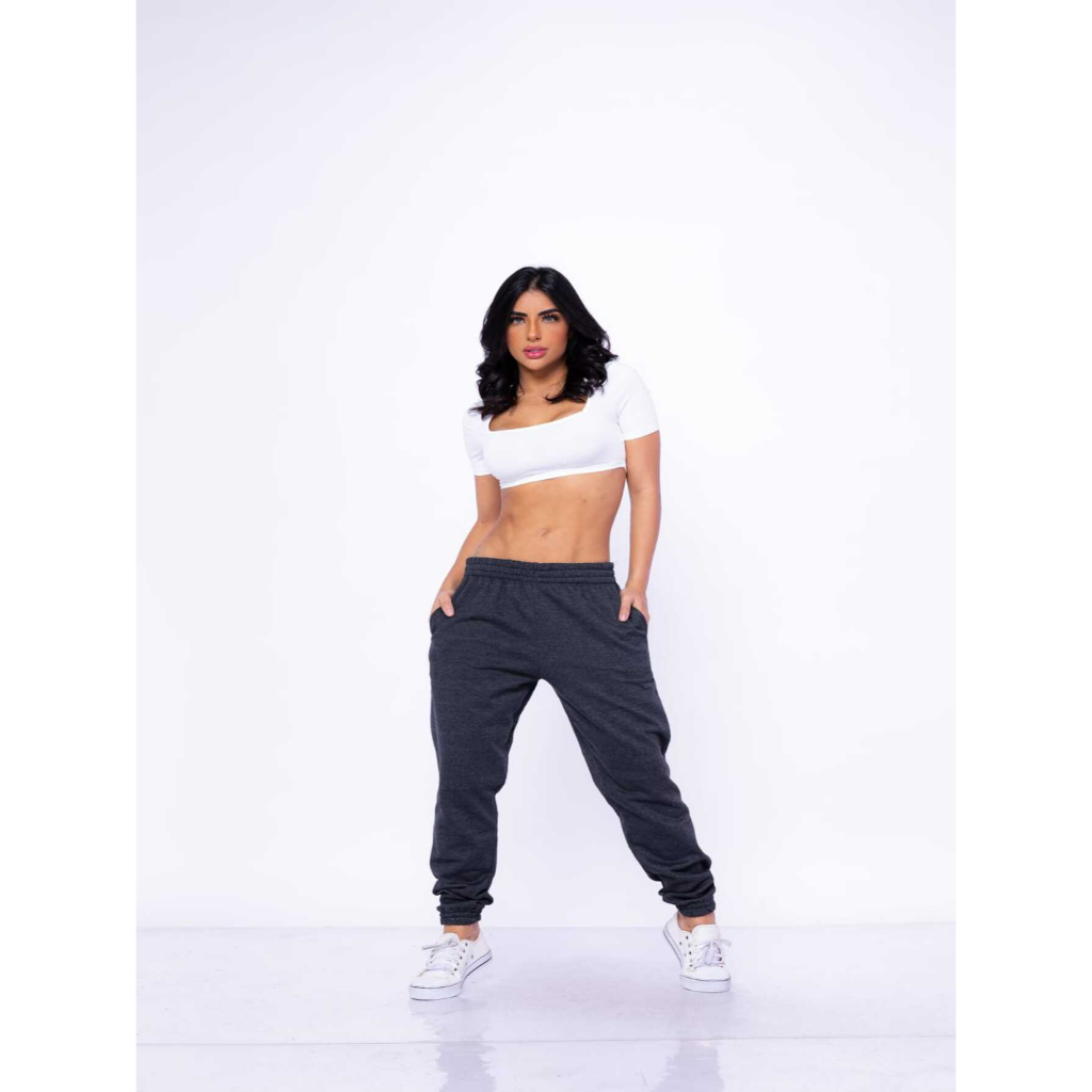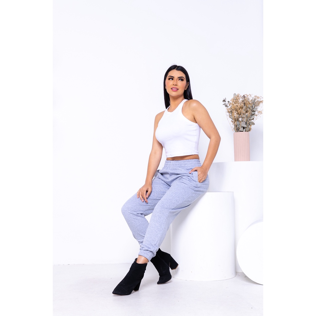 calça jogger feminina moletom flanelada cintura alta