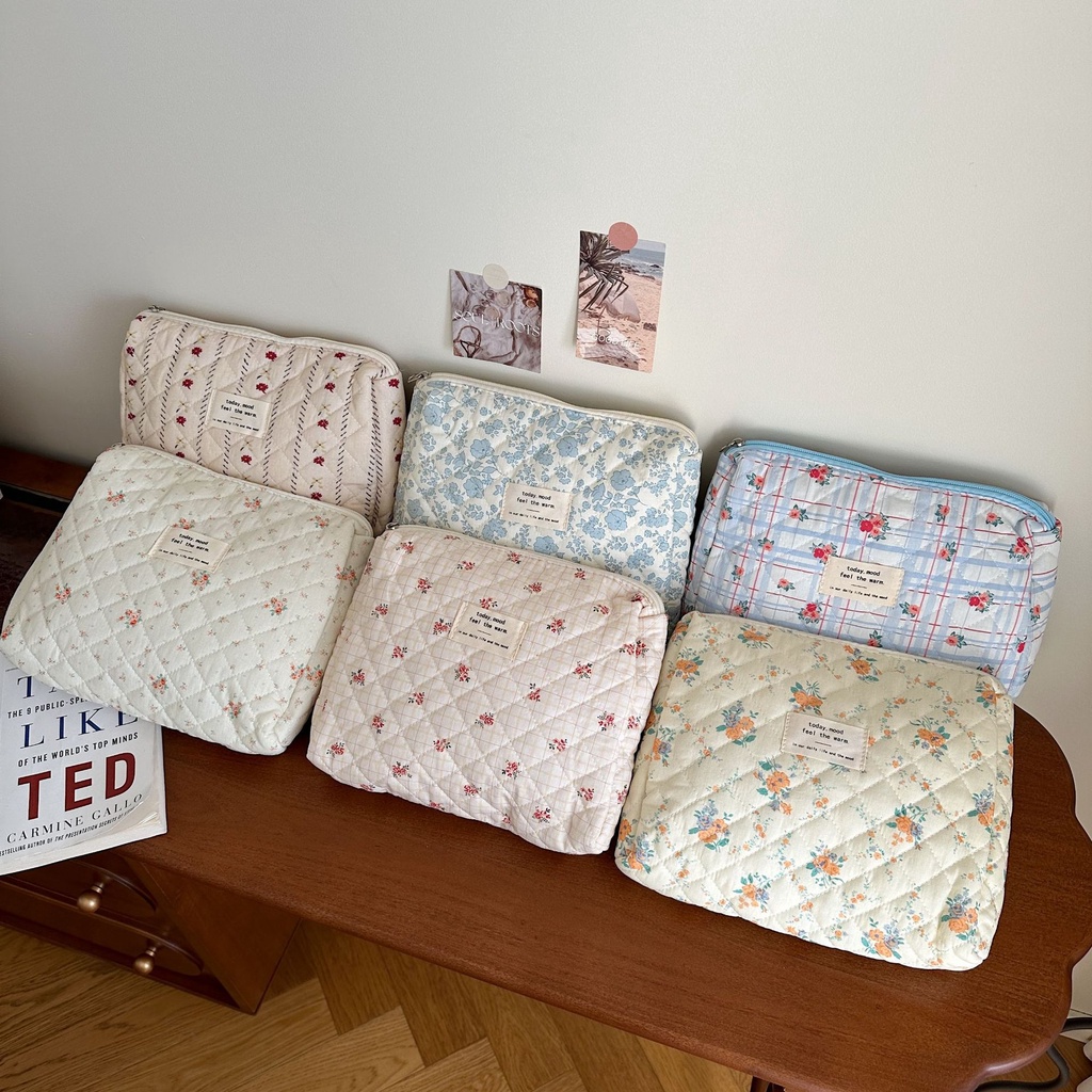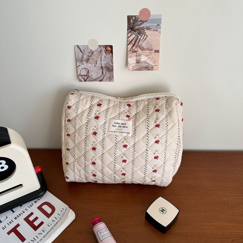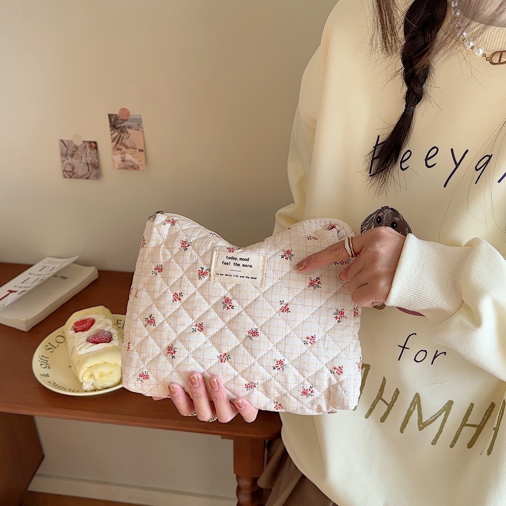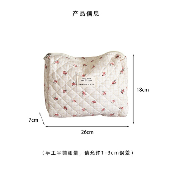 Nova bolsa de algodão acolchoado com flor doce Saco de maquiagem de grande capacidade com enchimento de algodão