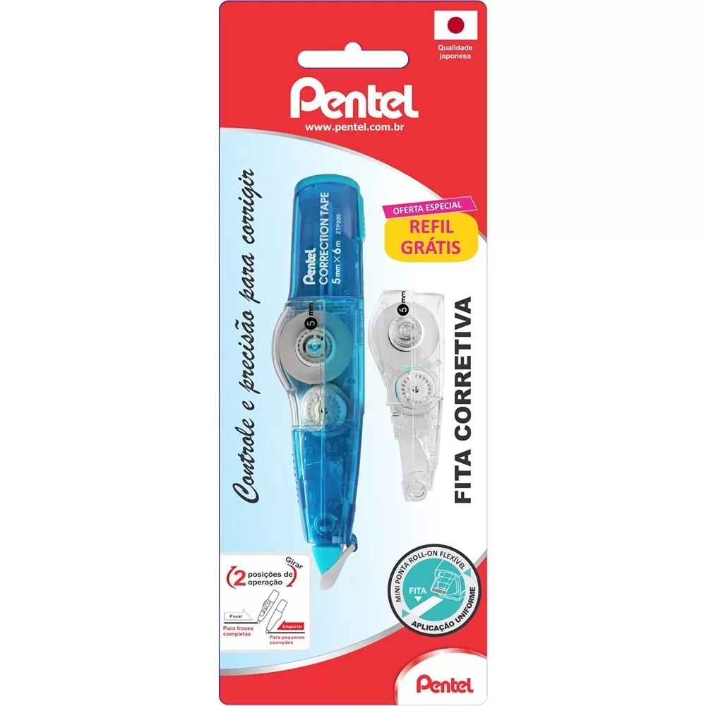 Fita Corretiva Recarregável + Refil Grátis 6 Metros Pentel