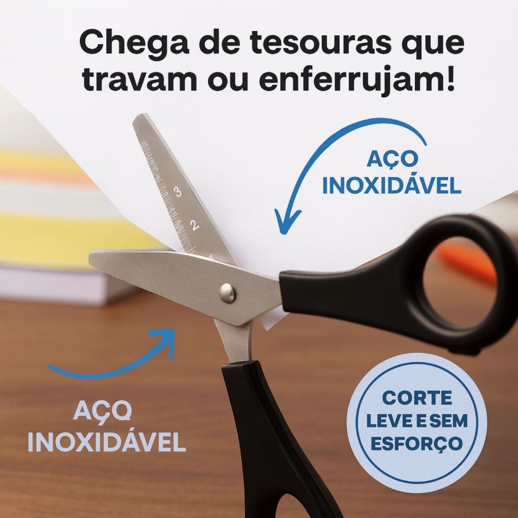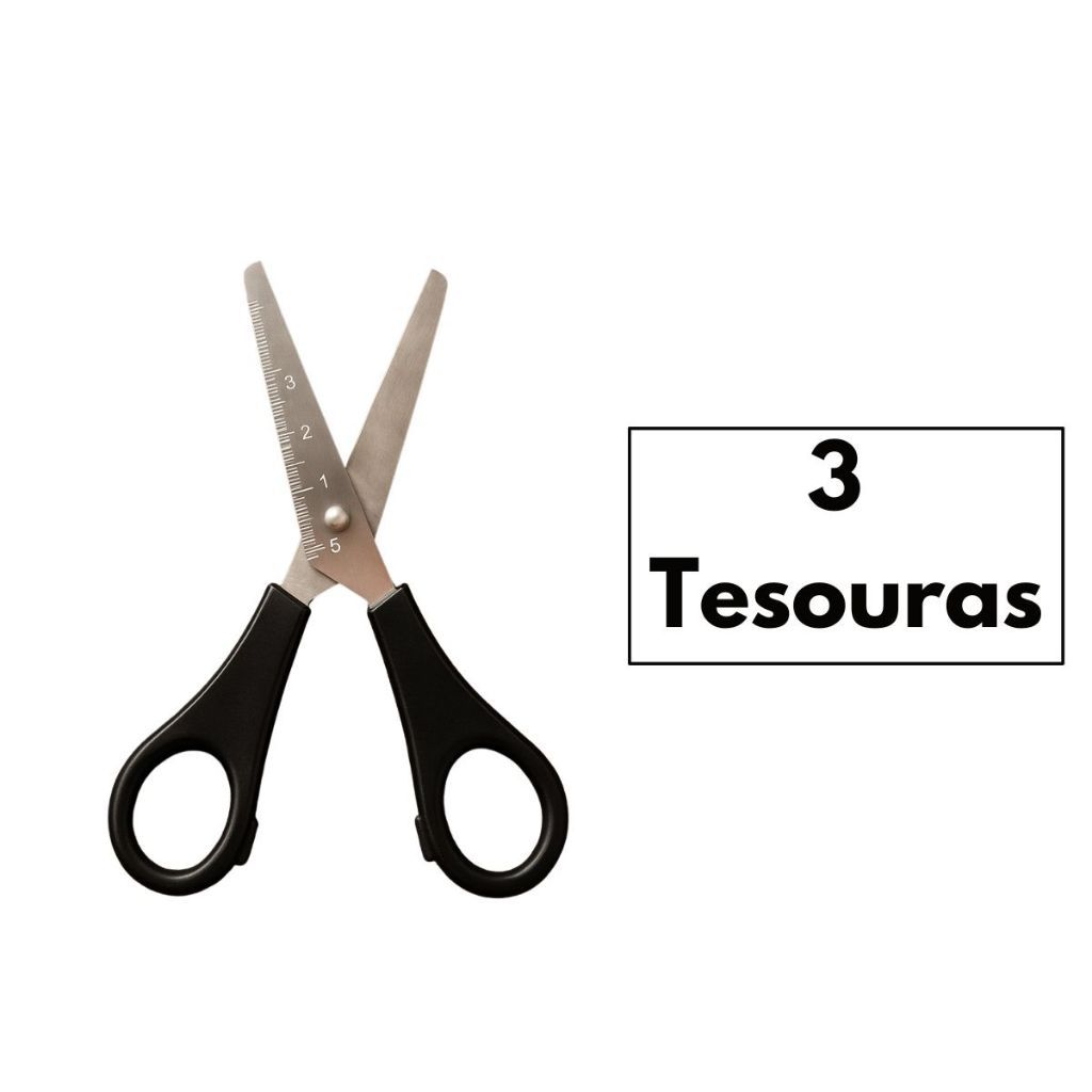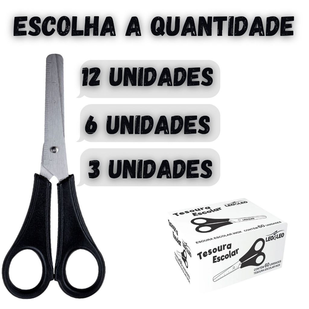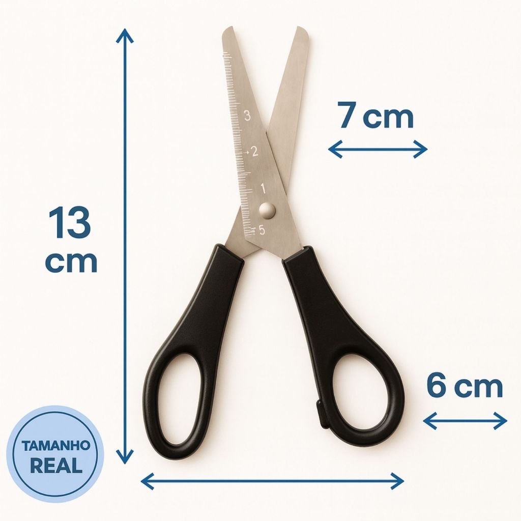 Tesoura Escolar Preta Inox 13cm Kit com 3 6 12 Unidades Corte Preciso Durável e Ergonômico