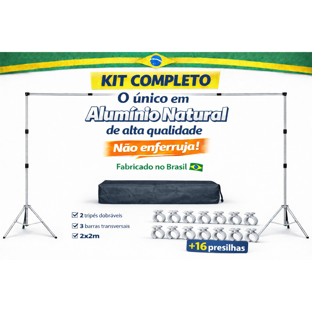 Suporte Fundo Infinito+ Bolsa+ 16 Presilhas Fotográfica 2x2+ Suporte Fotográfico