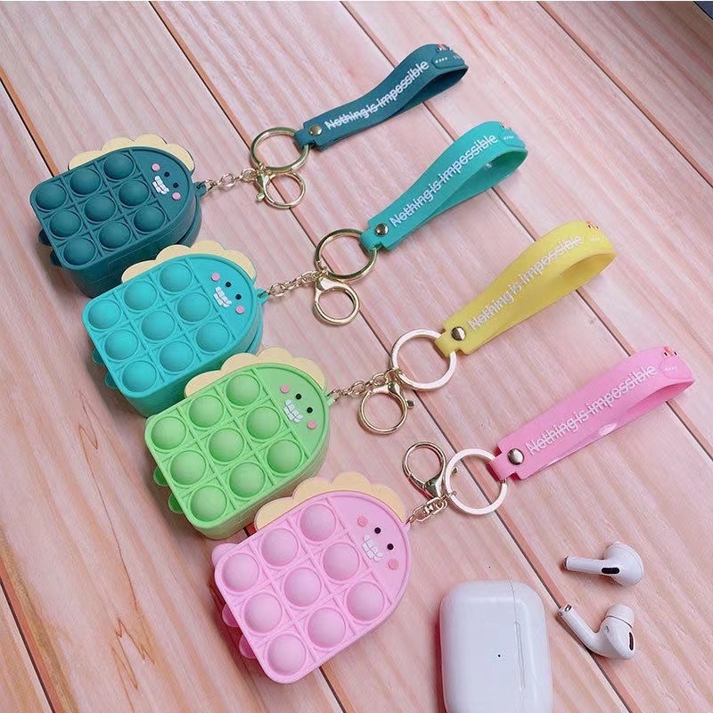 Chaveiro porta moedas porta fone de ouvido coloridoPopSit infantil anti-stress colorido desenhos animadosfrases inglês.