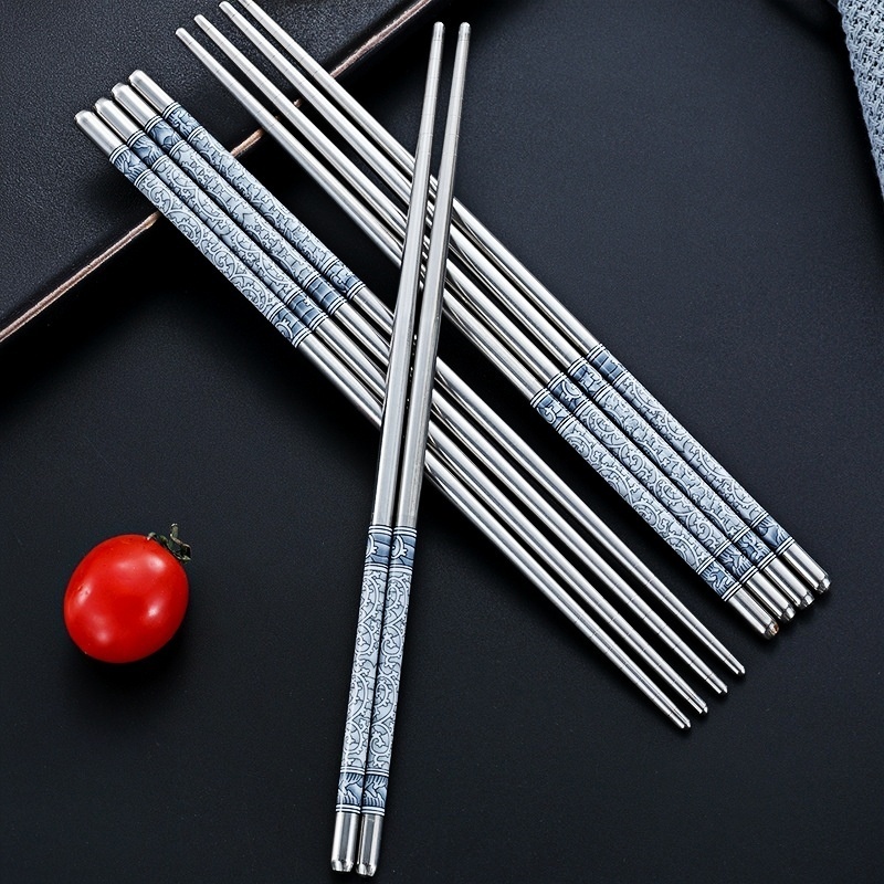 5 Pares Pauzinho Azul E Silver Com Estampa De Flor De Porcelana Cozinha Estilo Vintage