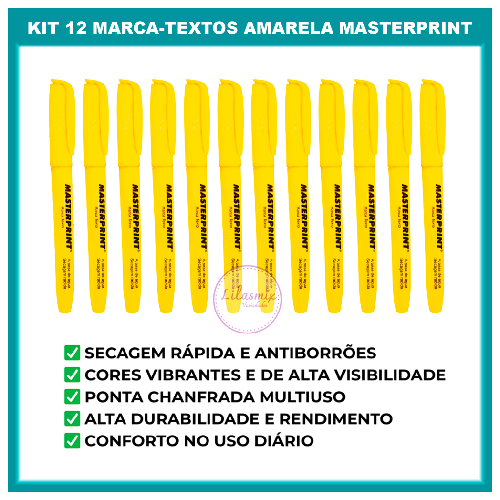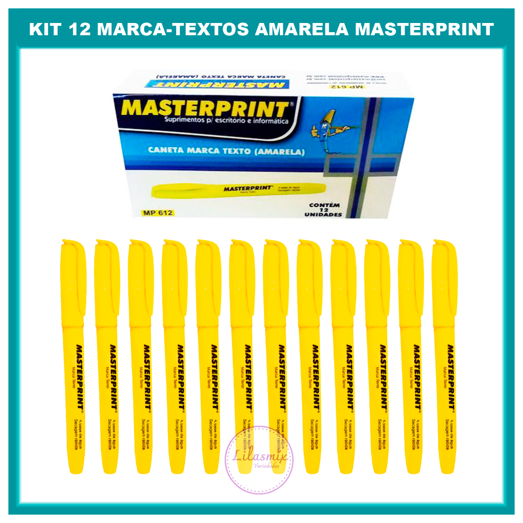 Caixa Caneta Marca Texto Amarela Amarelo Com 12 Unidades Masterprint Mp612 Material Escolar Barato