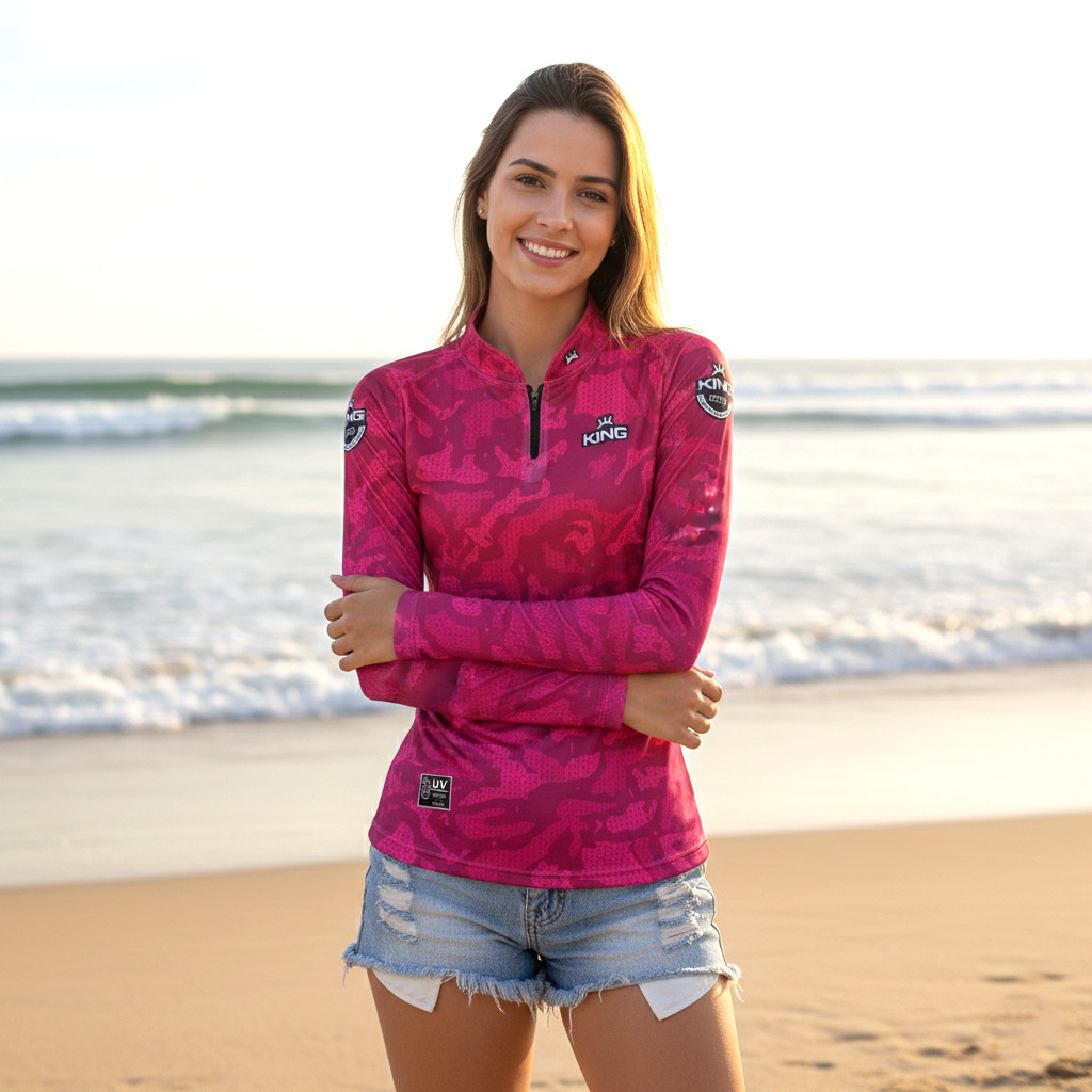 Camisa Feminina Com Proteção Solar UV50 Pesca Caminhada Praia Camisa de Pesca Feminina Sem Peixe