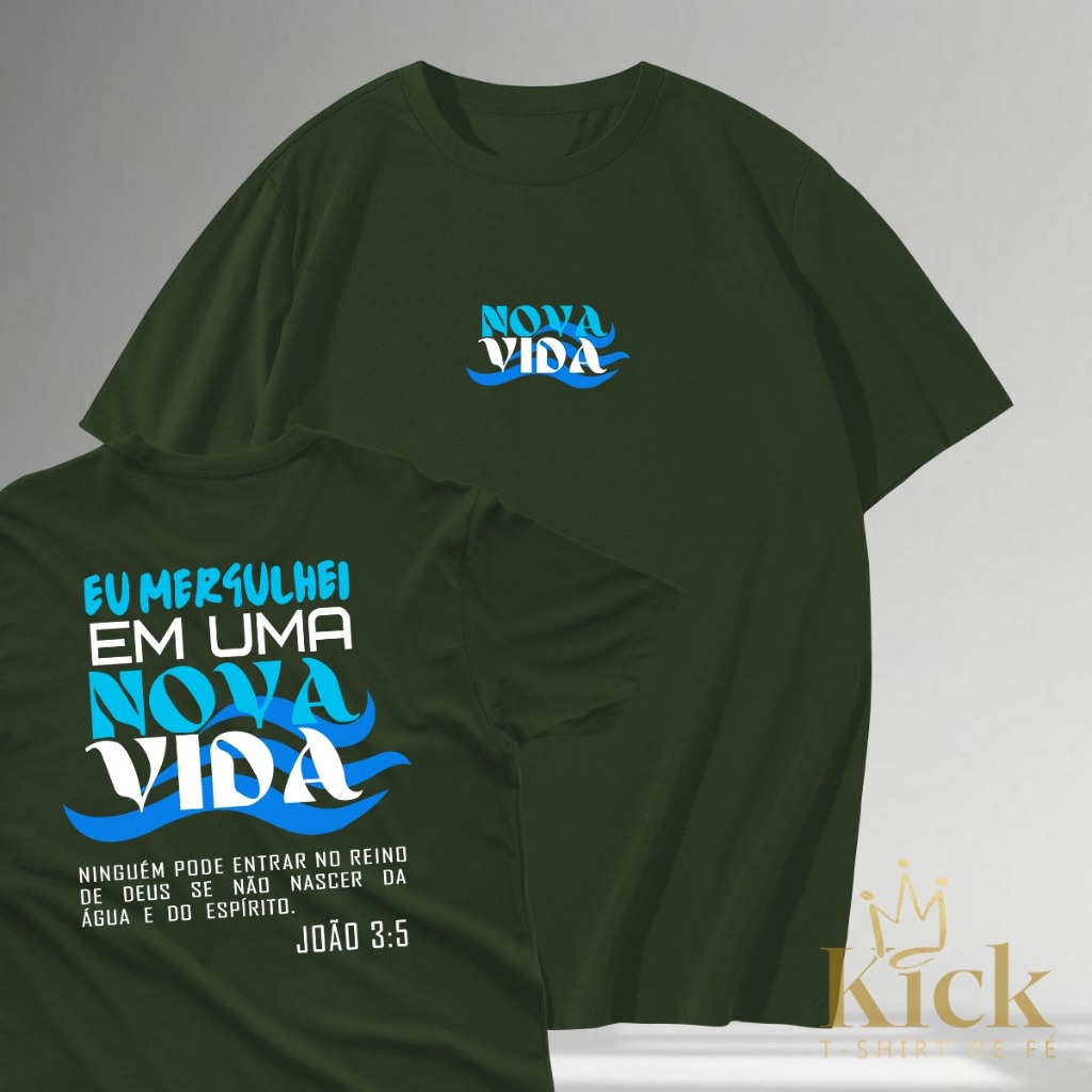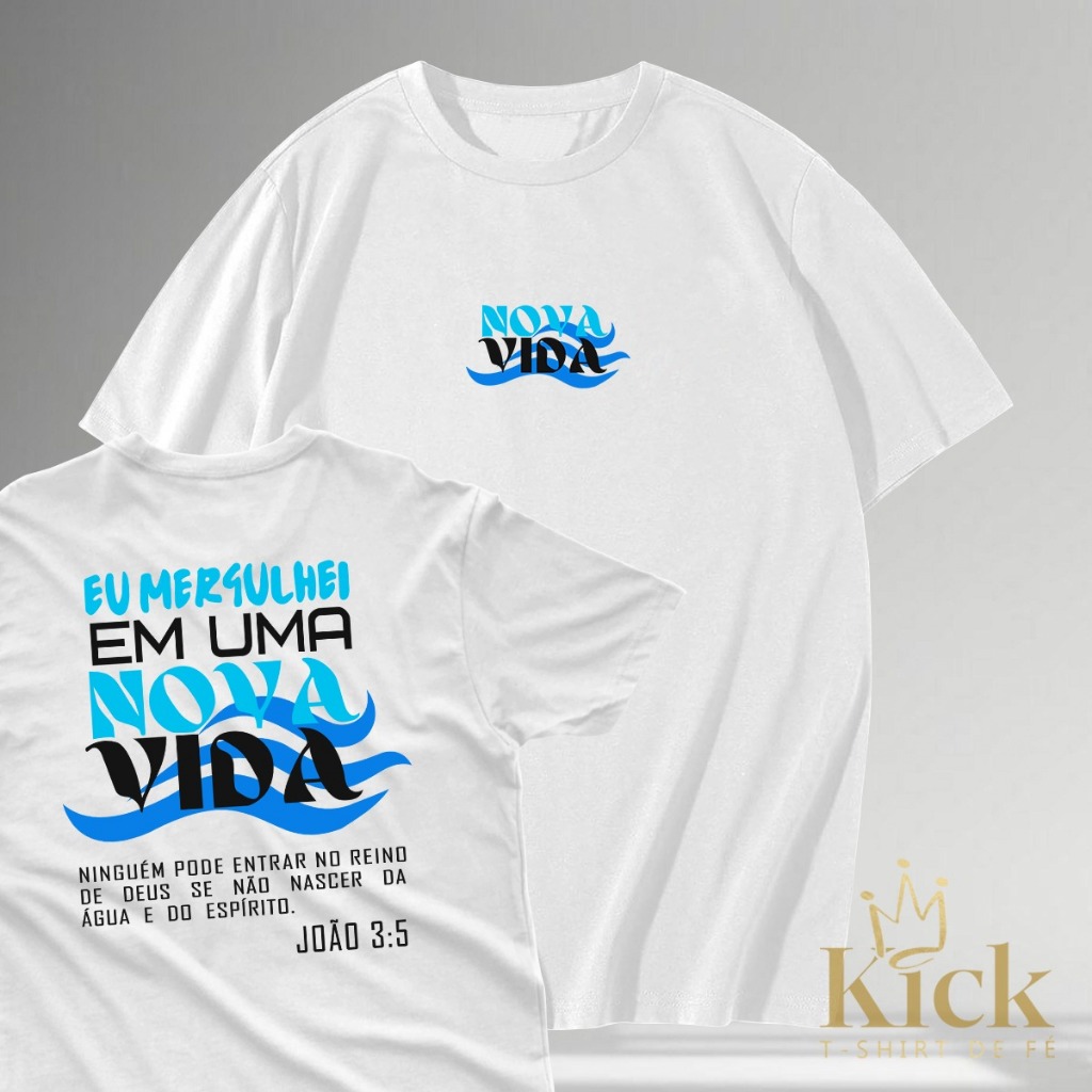 Camisa Camiseta T-Shirt de Fé Nova Vida Batismo