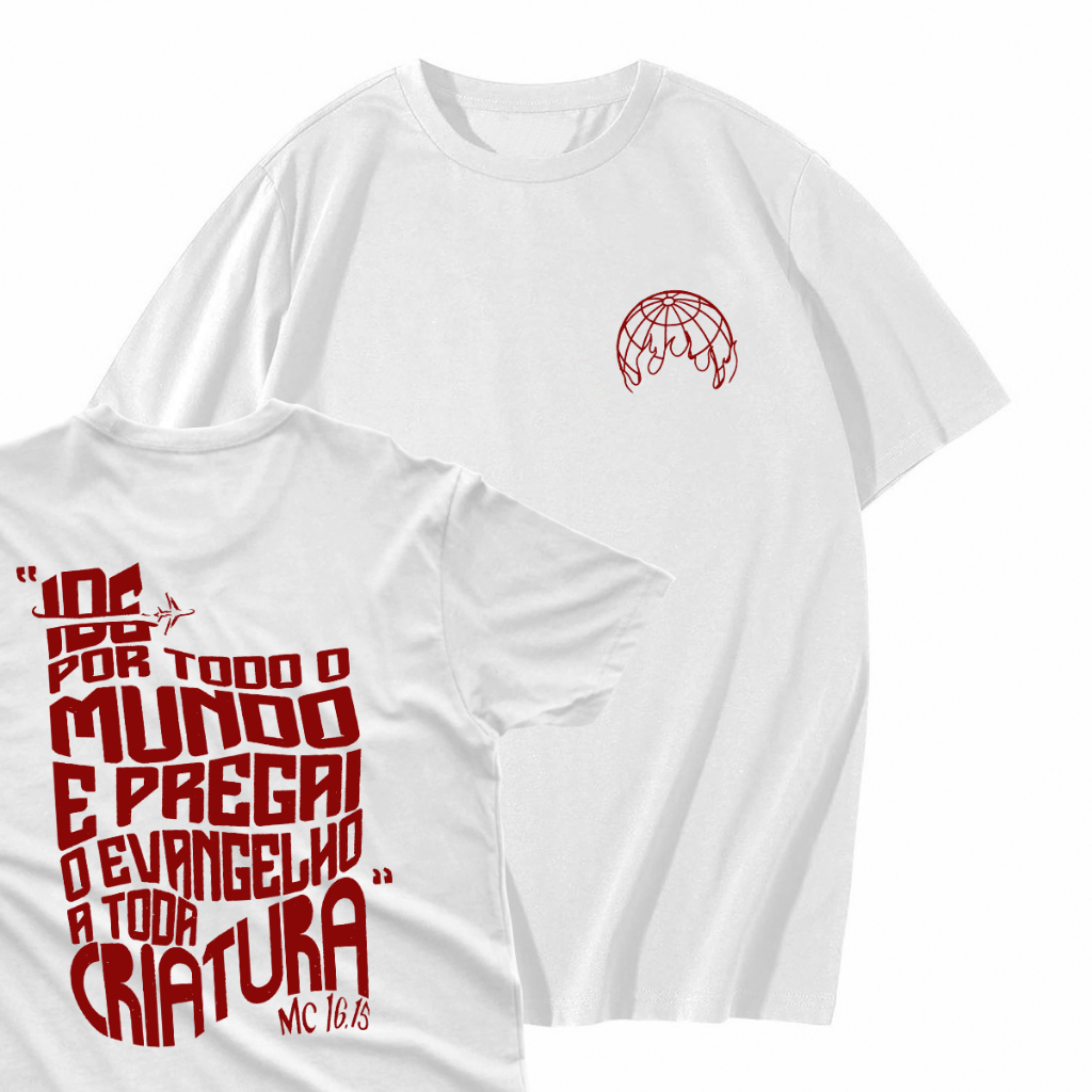 Camiseta T-Shirt Cristã 100% Algodão "Ide por todo o mundo"