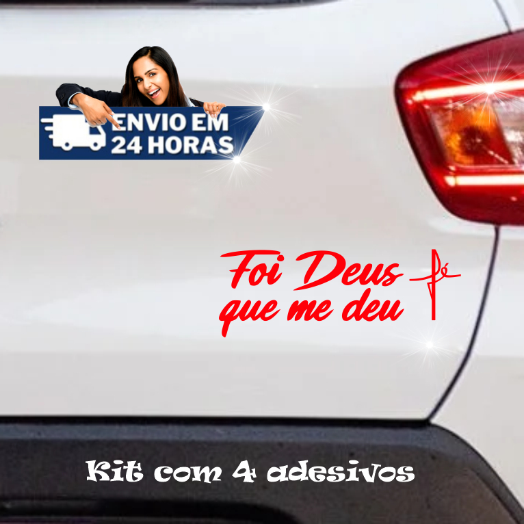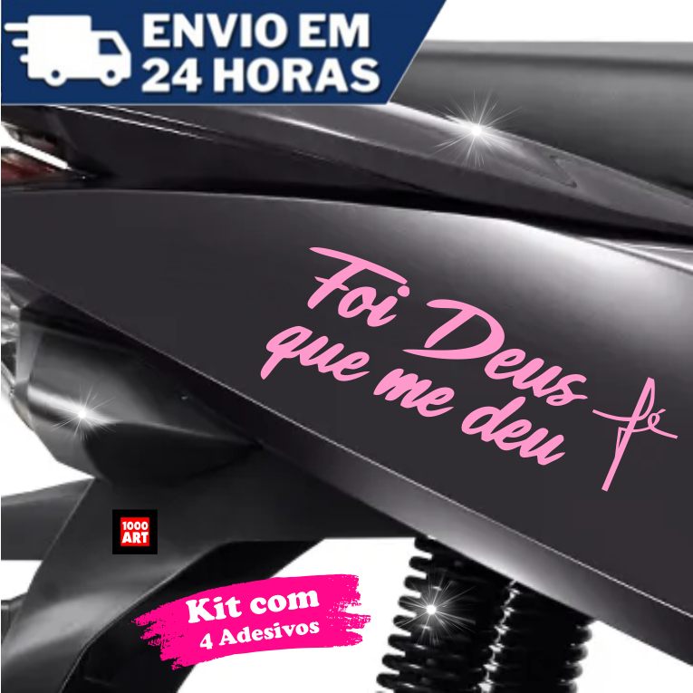 Adesivo Frase Foi Deus que me deu + Fé - Kit com 4 - Moto Carro Casa Loja Trabalho Nmax App Taxi Uber Biz
