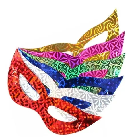 Máscara Papel Holográfica com 10/20/30 Unidades Carnaval Festa
